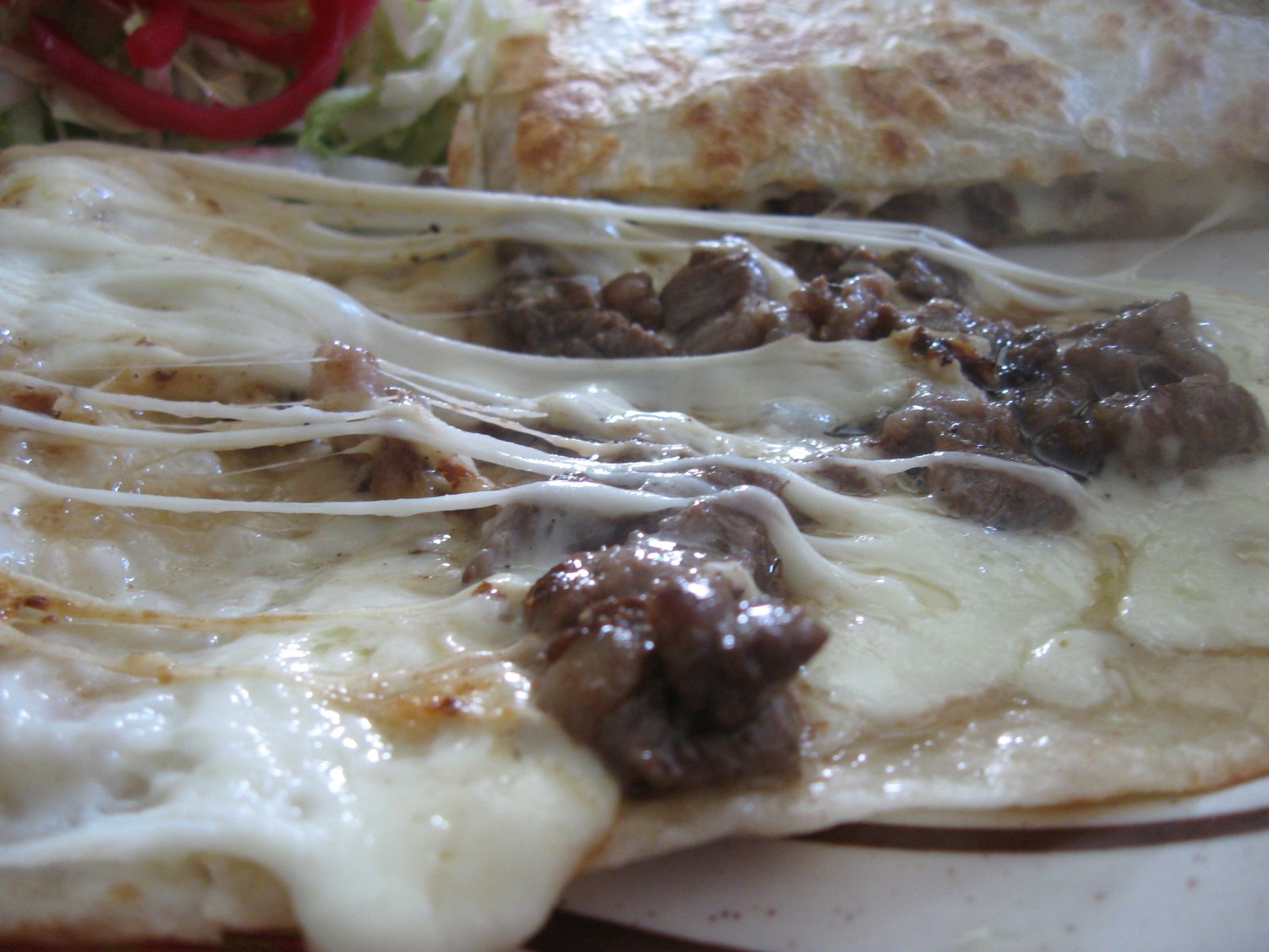 And you can get the quesadillas with meat and cheese fillings. This one has carne asada: