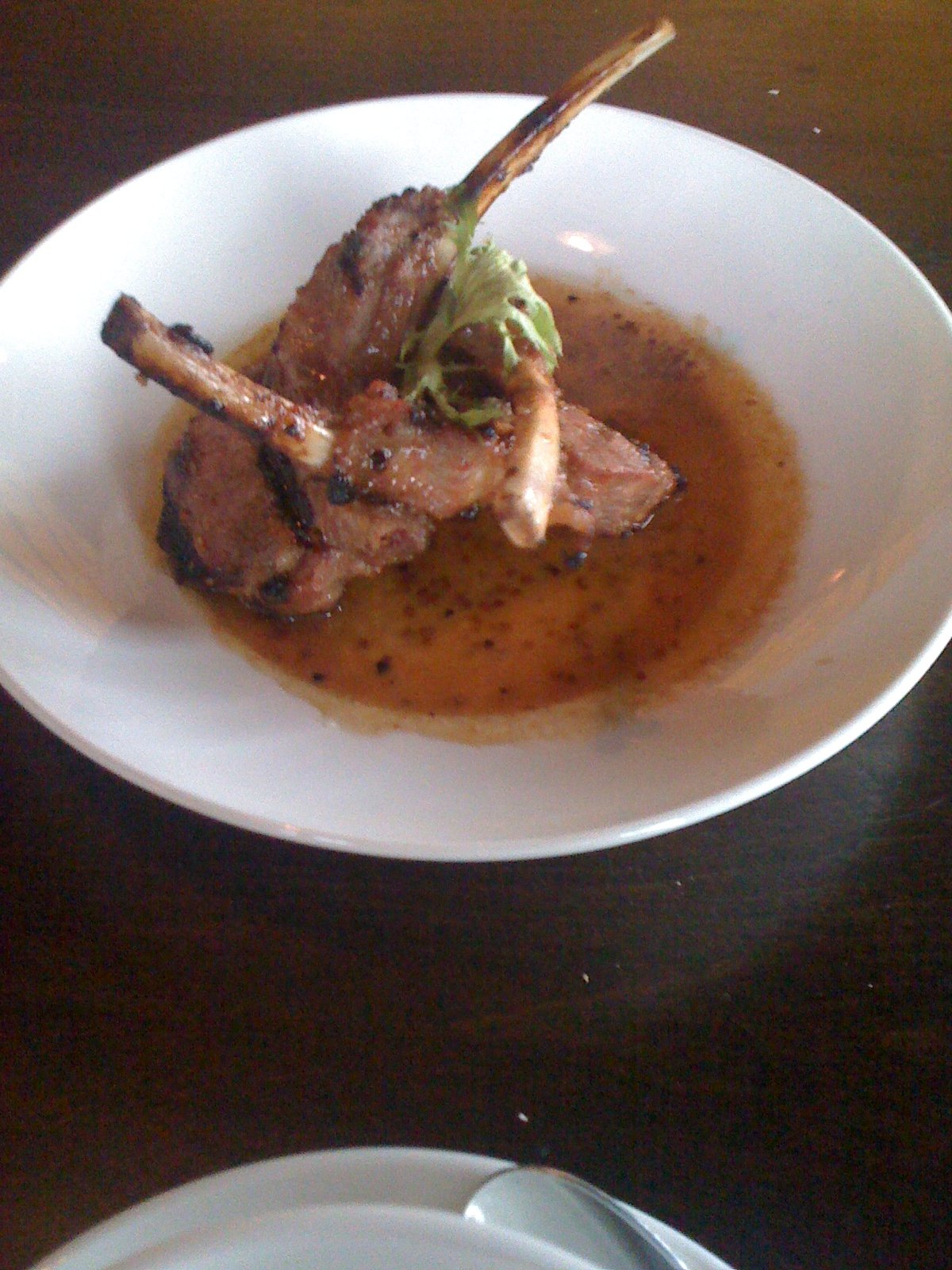 As an appetizer, the lamb chops ($12) could be a meal. 'New Zealand lamb chops' it says on the menu, 'served with a Champagne-whole grain mustard sauce'. It didn't say three on the menu, we assumed there would only be two, since the listing was plural. We asked the chops to be cooked medium rare, and they were. This serving size, cooking and flavors were a wonderful surprising lead in as to the dinner which would follow.