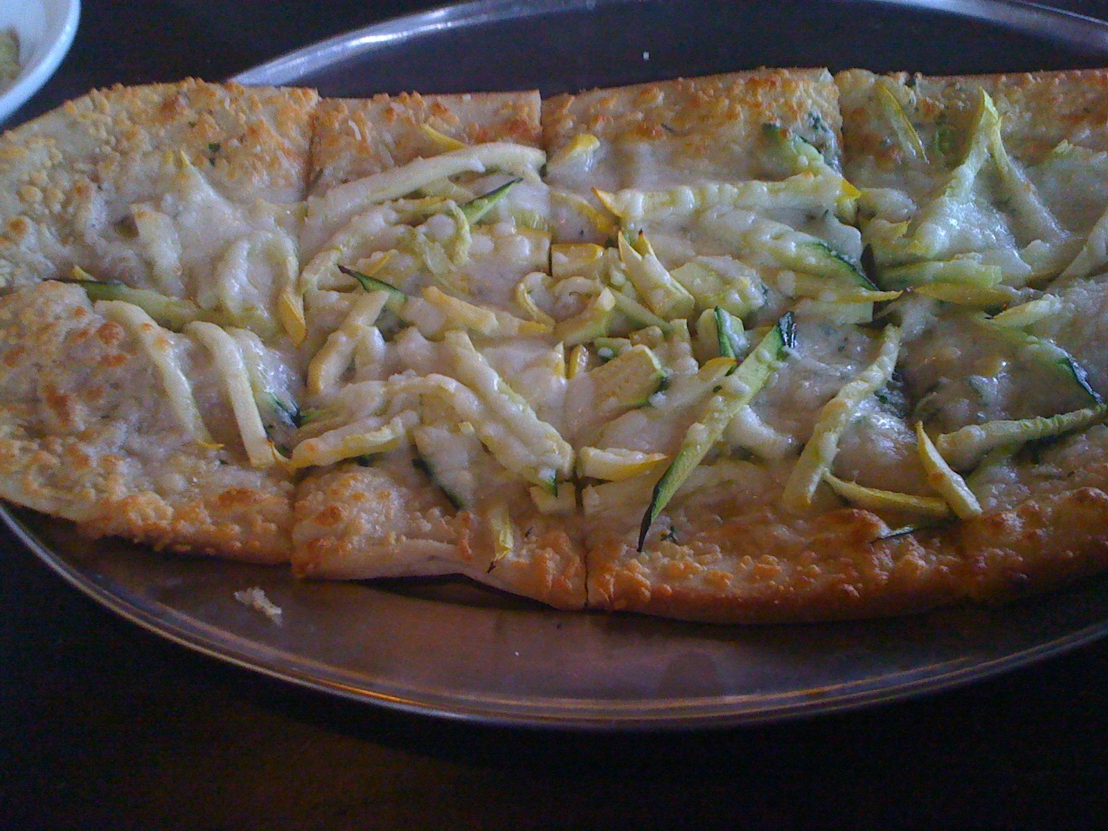 I wanted to try the Pizza Bianco, a white vegetable pizza ($12). A fresh thin bread which was infused with cheese and oil was topped with matchstick cut zuchini and yellow squash, topped with Havarti cheese. This was a very large pizza, easily shared (or reheated for breakfast the next morning). Oh, it tasted heavenly.