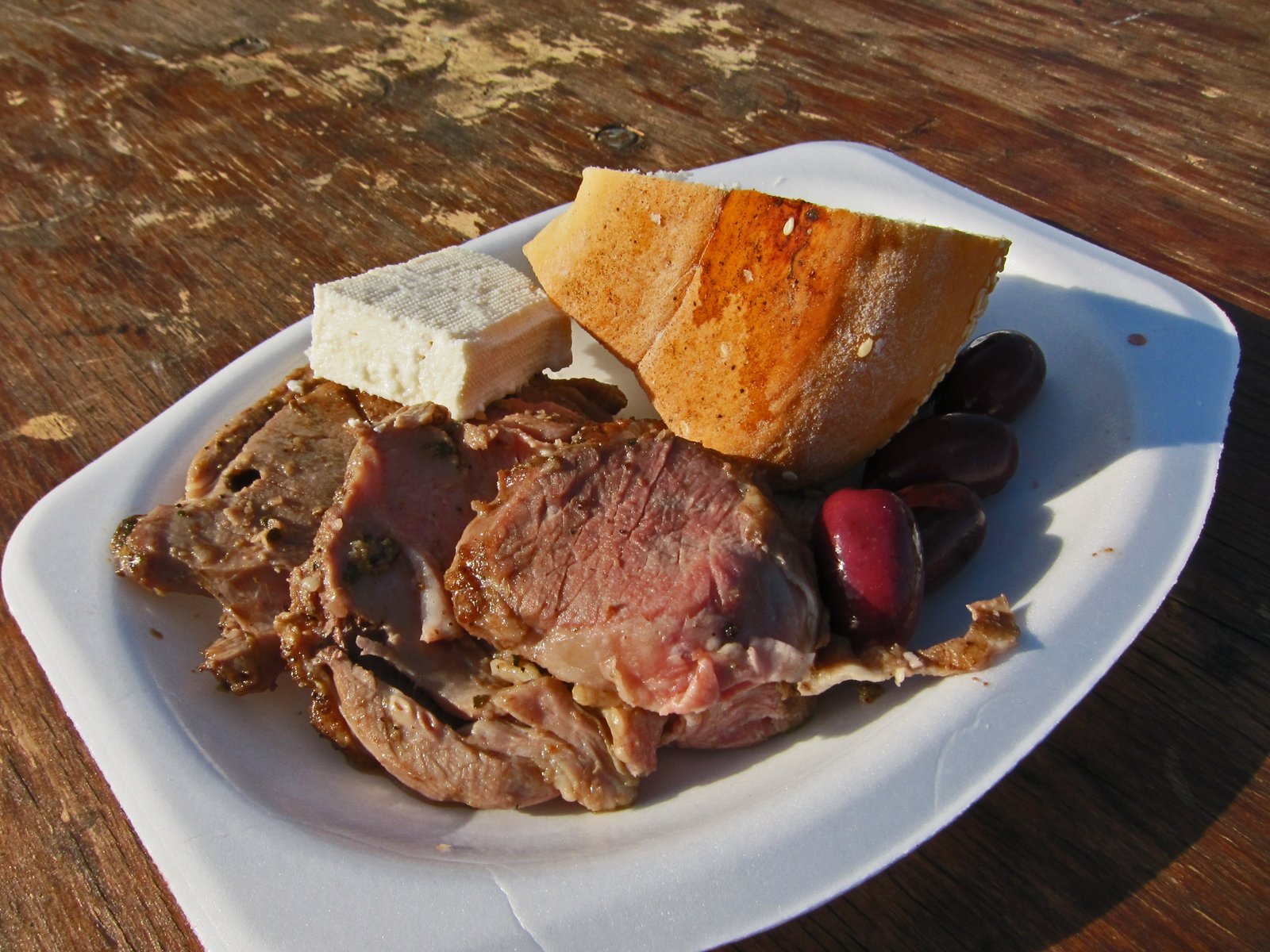 Because I had only a short amount of time I didn't anticipate getting anything to eat….. that is until the smell of lamb and sausages grilling over charcoal got the better of me. So I did grab a lamb plate from the Taverna: