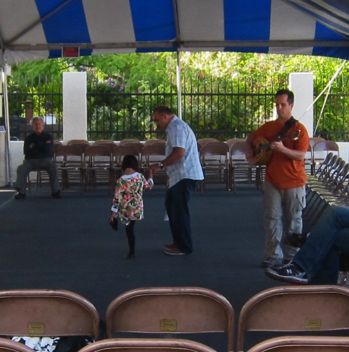 This was much better than I recall, moist and tender, with a tad of the "flavor of the pasture". I ate at a one of the stand up tables, and watched a Dad teaching his daughter some Greek dance steps…. well I think it was Greek dance steps.