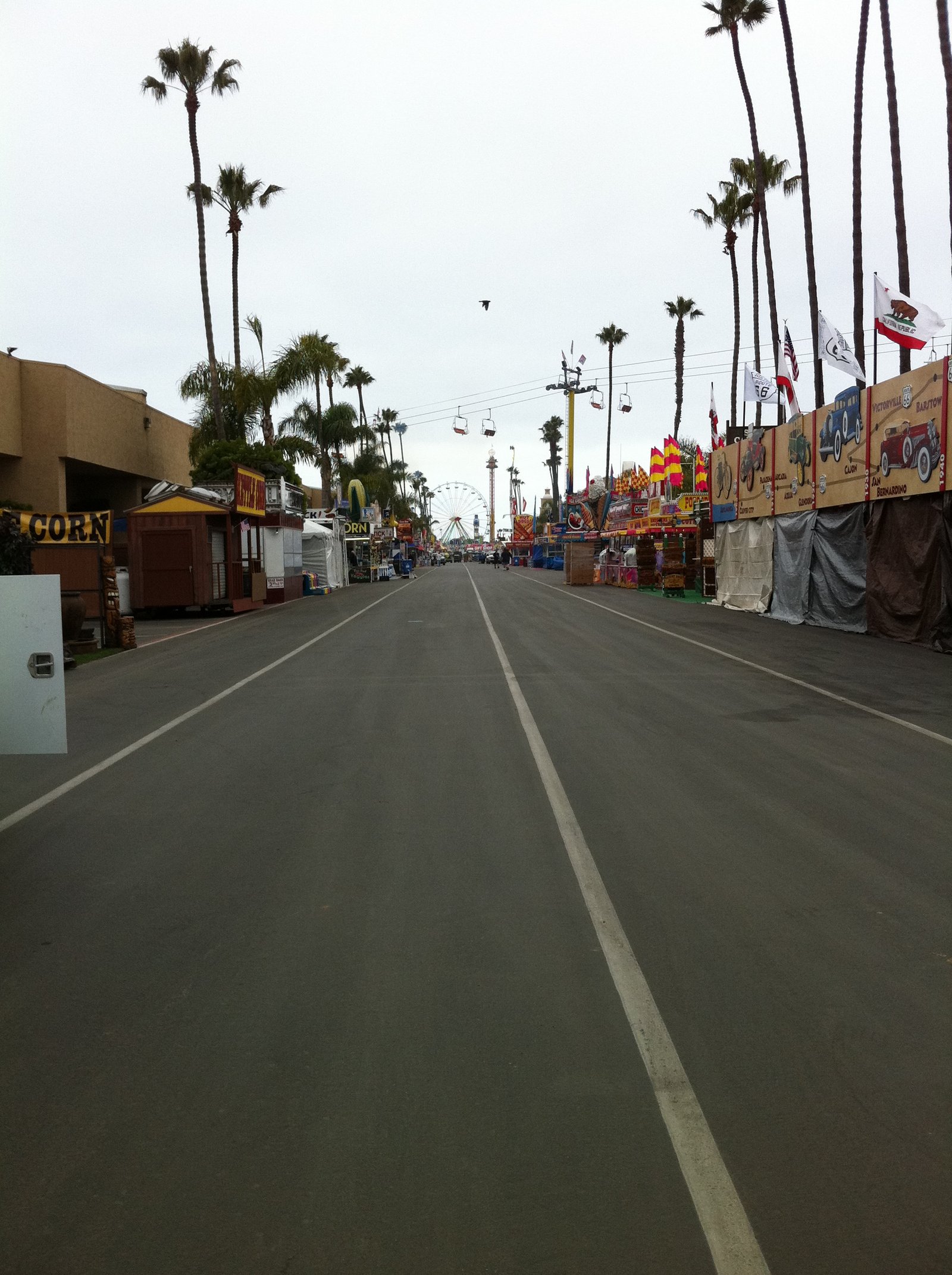 Yesterday, you can see the rides are set up, the booths are filled with product and people are bustling around.