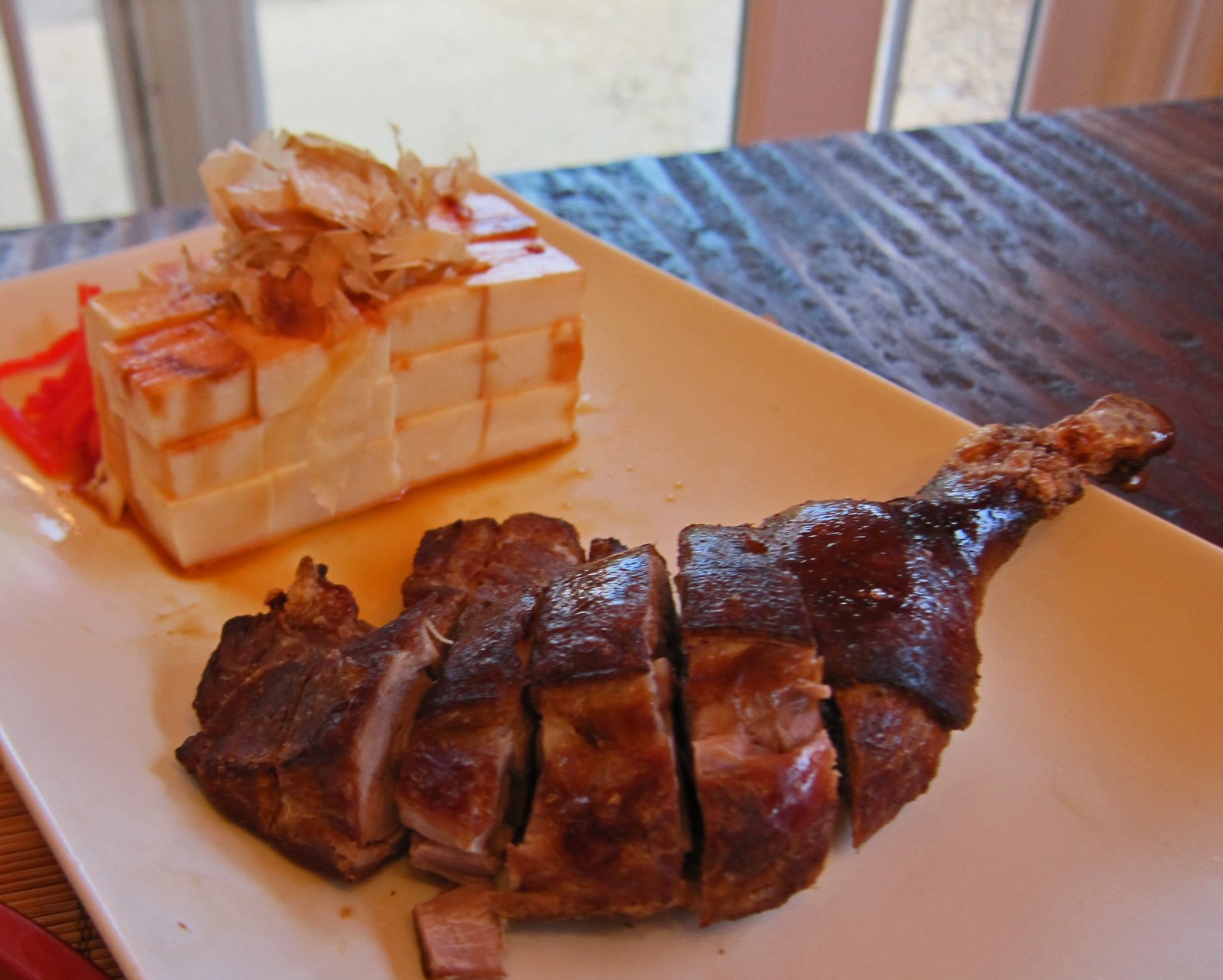 I decided to deep fry the duck leg, which turned out quite well, along with some hiyakko tofu…..