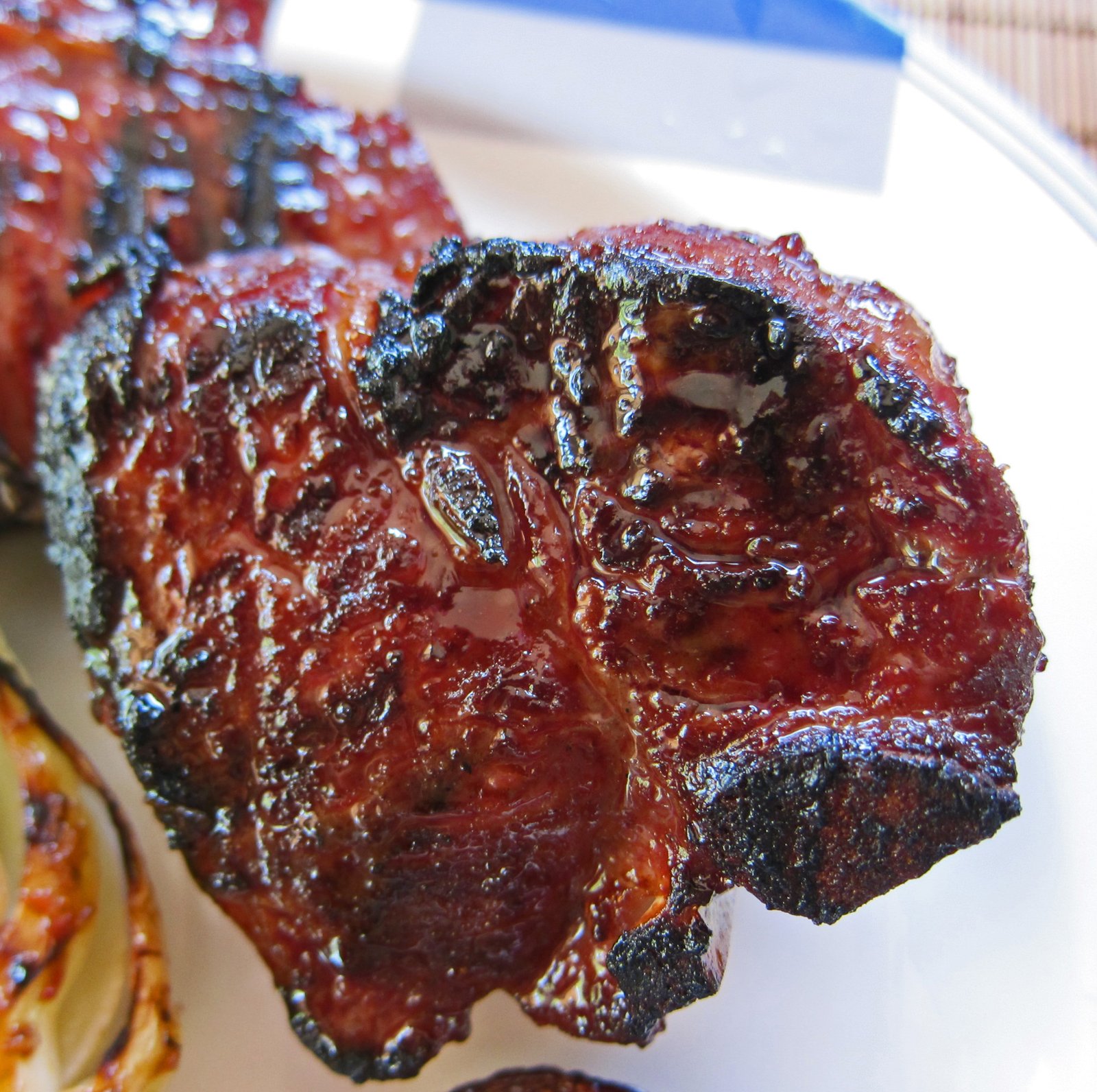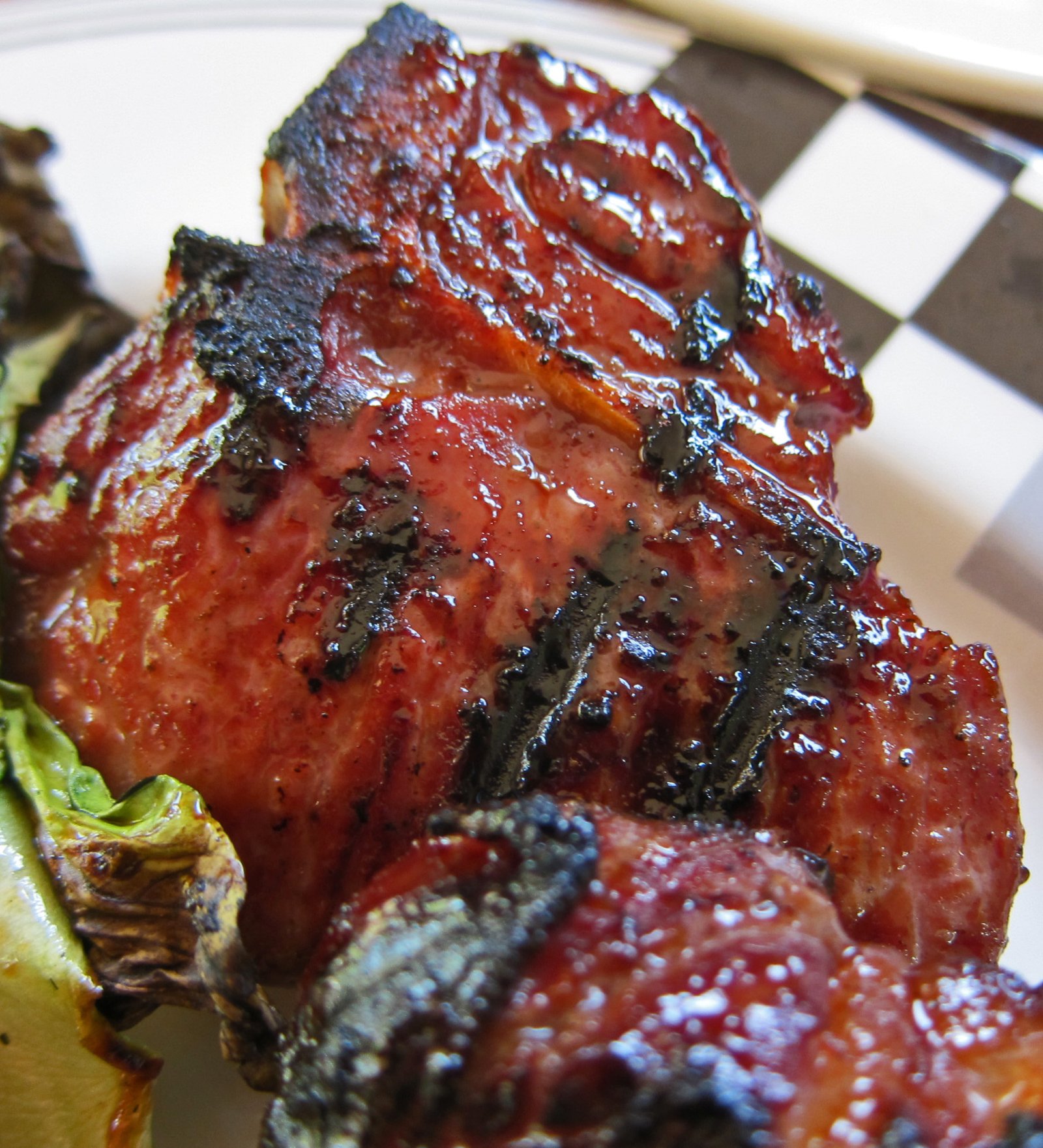 I've been enjoying Alan Wong's The Blue Tomato, which operated much like Thomas Keller's cookbook, giving us insight as to how dishes are developed and put together. Browsing through the book, one of the recipes caught my attention…. first, it was quite easy, second it sounded like something I'd like to eat.…. Char Siu Lamb Chops. It's a riff on the classic Chinese BBQ Pork recipe and made on the grill. I've made Char Siu, so this wasn't much of a leap…and as a bonus, less messy than making it in the oven. This recipe uses ginger, garlic, and kecap manis. Sherry is used instead of Shaoxing wine. It was quite good. I made adjustments to taste, and since I used the very potent five-spice from QingDao I cut back a bit on that as well.