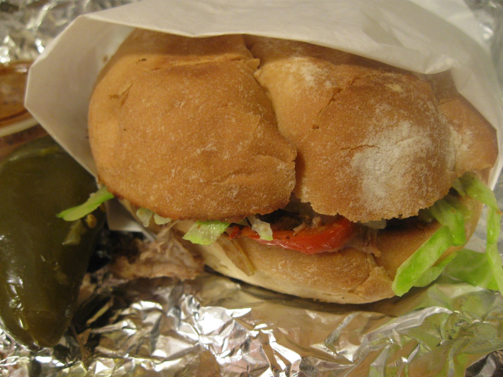 Inside, there is a smear of frijoles, slices of avocado, chopped lettuce, tomato and mayo. I, for one, appreciate the pickled jalapeno, which I've always thought was perfect with tortas.