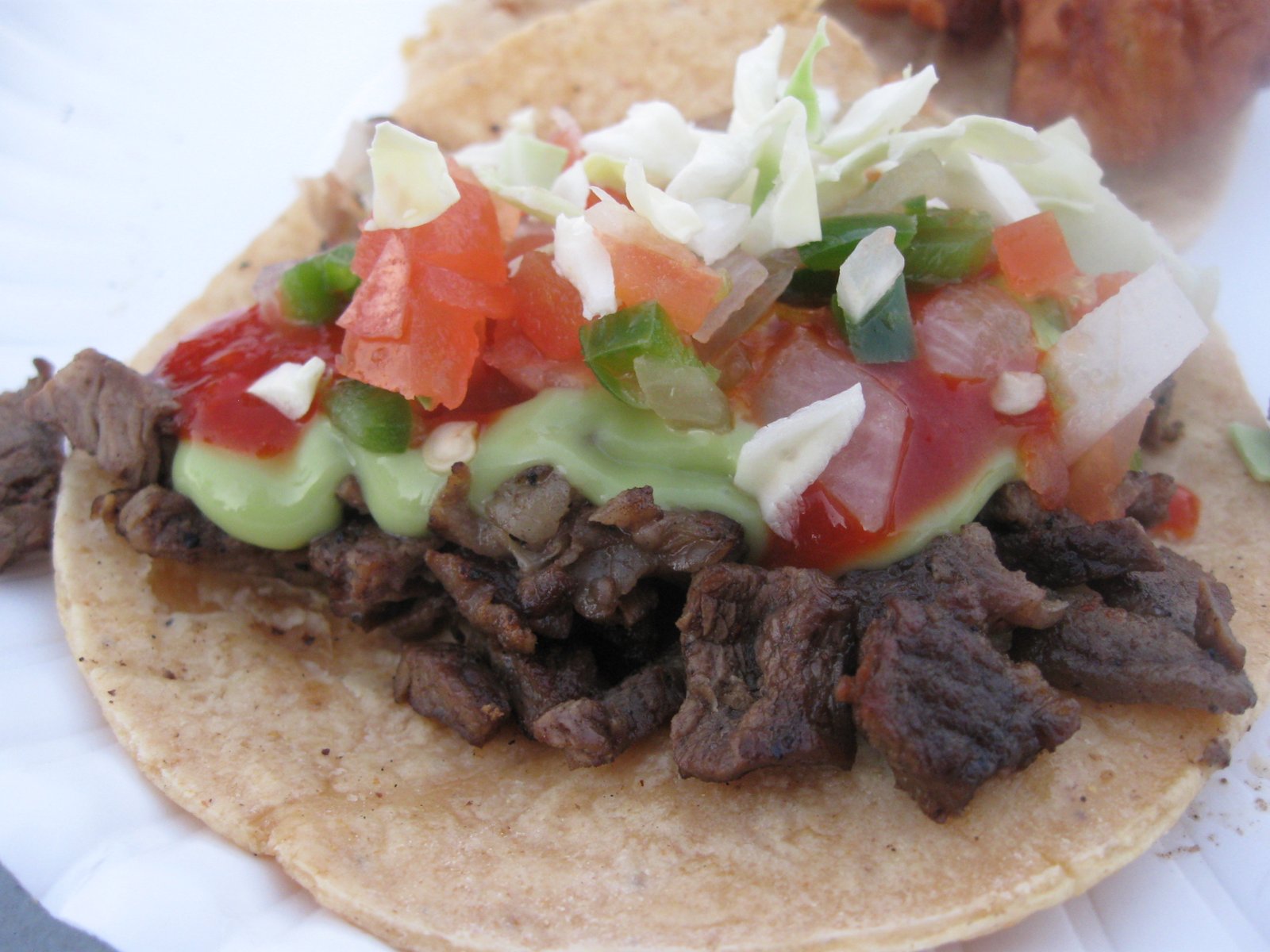 They now serve a range of decent tacos that you can decorate with guacamole, pico de gallo, shredded cabbage, and lemon wedges. A carne asada taco with all the fixings looks like this: