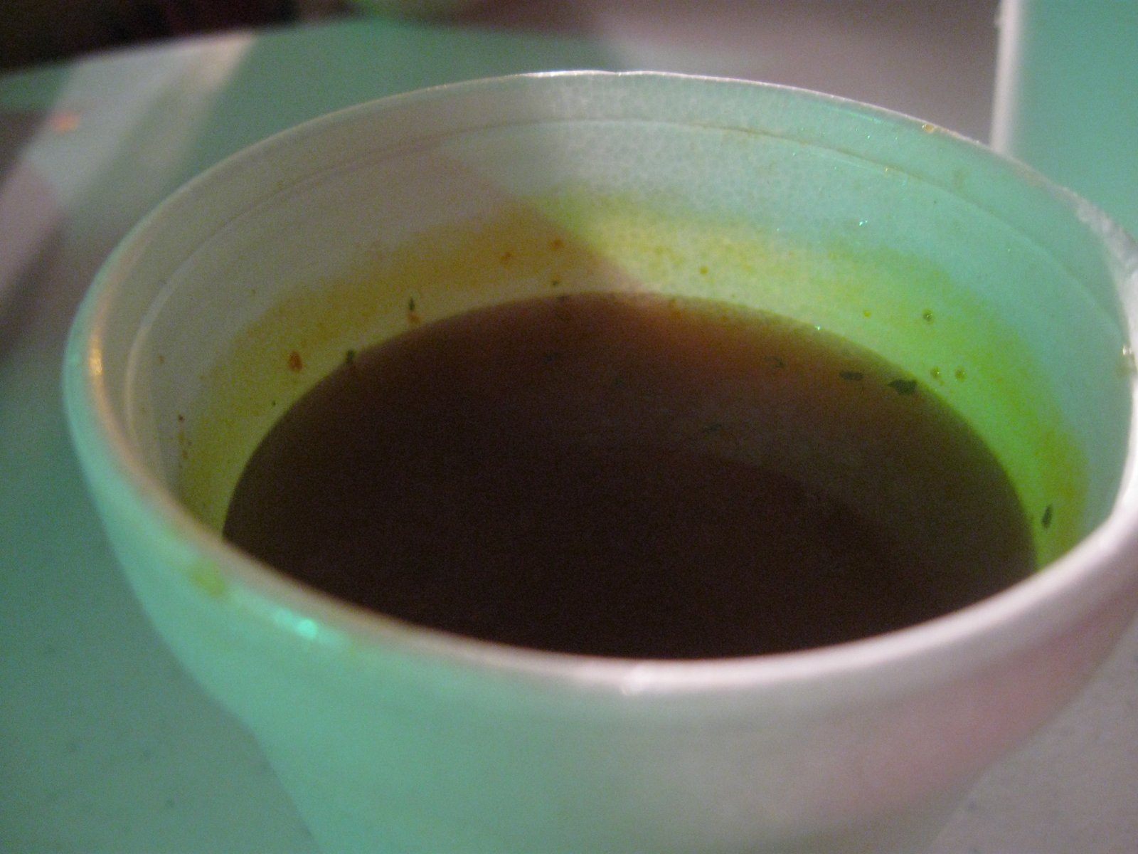 The only meat used by this truck is beef, and the beef has been cooked a long time so that its flavor in the tacos and flautas is fairly neutral and background. The consommé, on the other hand, is as beefy as Arnold Schwarzenegger in his glory days.