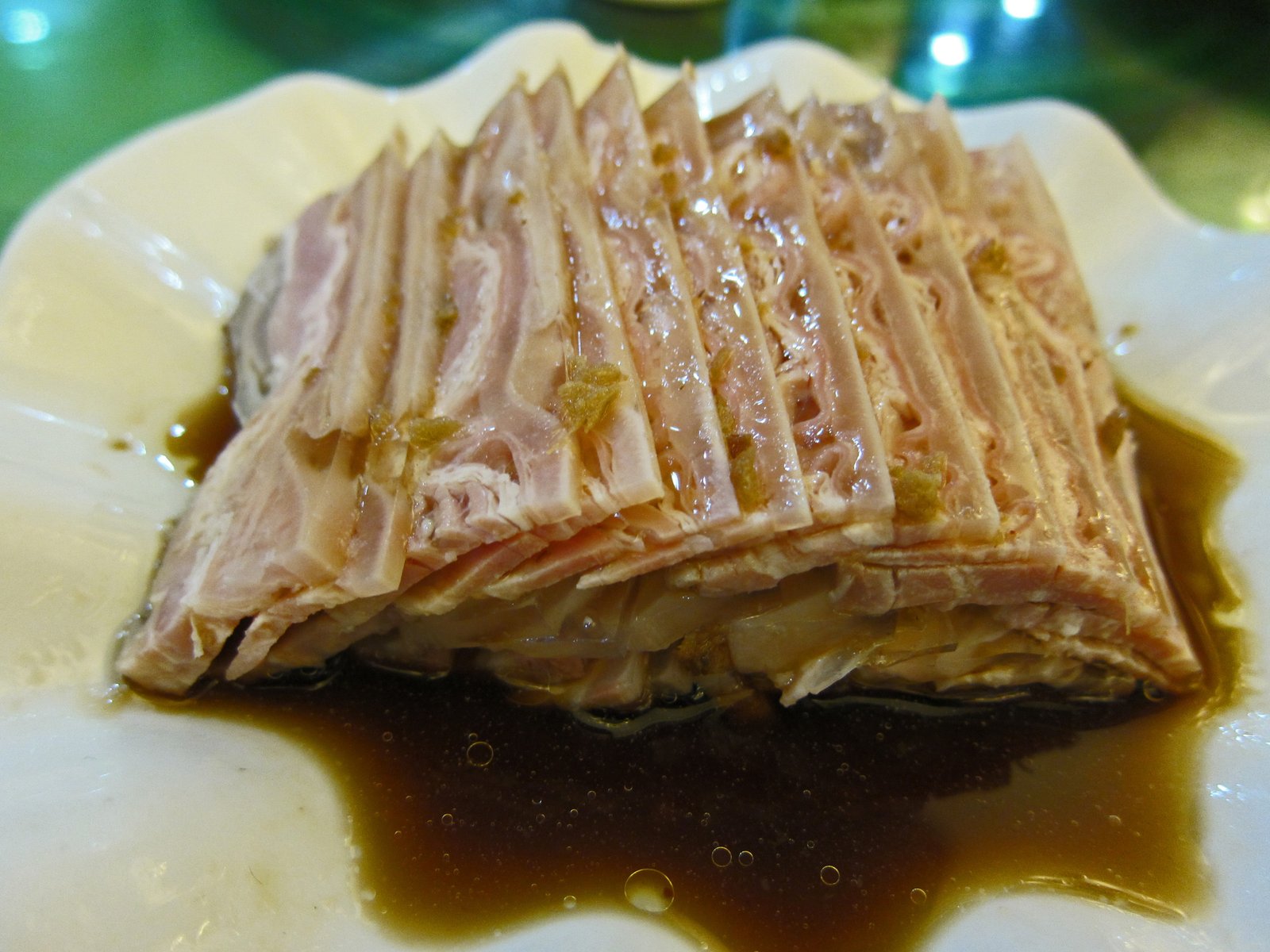Like a good head cheese, cut with the Black Vinegar and soy sauce.