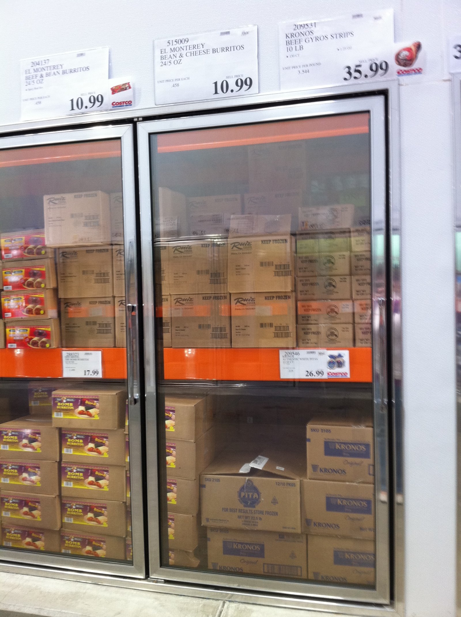 Not long ago, I came to some sort of realization that I don't know of any place that 'makes' their own gyros…that there is no variation of how it tastes. Schawarma I see being prepared onto spits, and the flavor varies from place to place, but gyros is always the same; it's common. The only variation I see is in the thickness of slices, but not the spices or flavor really, unless the slice is grilled and carmelized…then I went to the Costco Business Center, and saw the 10 lb packages of gyros strips…
