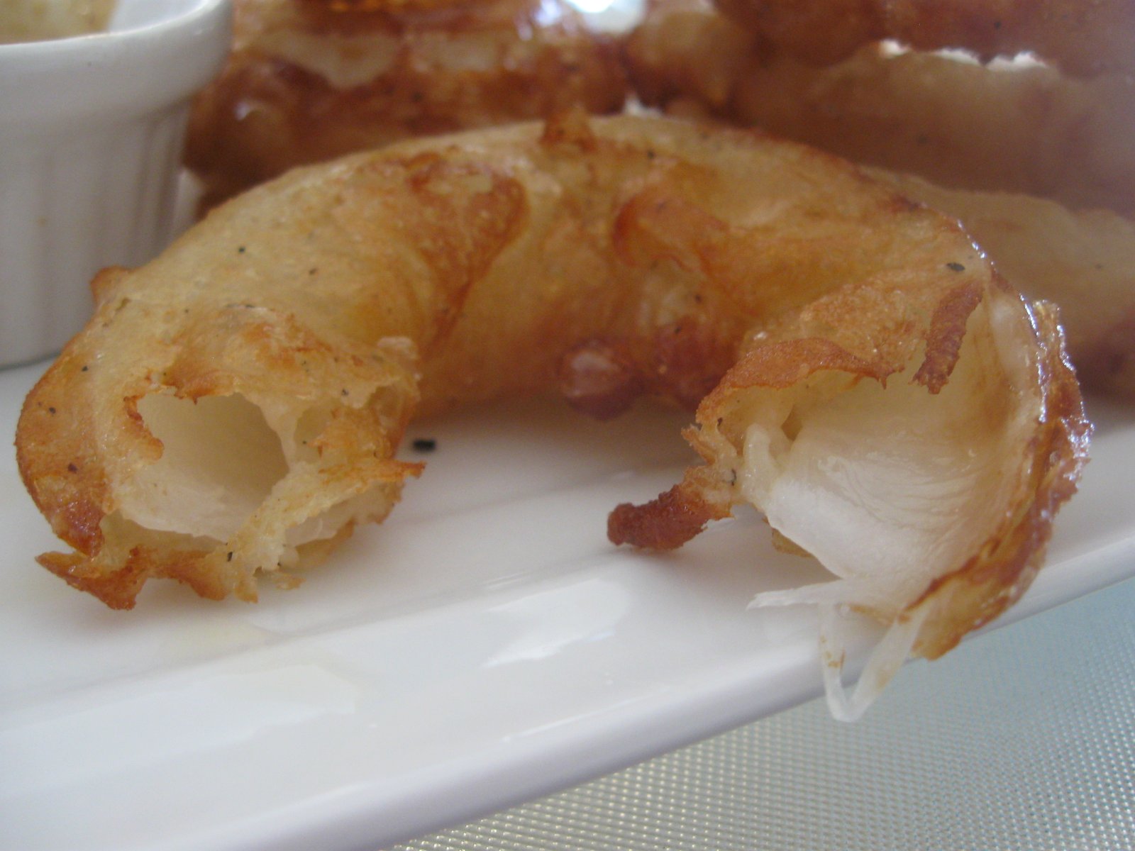 In most respects, the rings were excellent. They did, however, leave a light greasy aftertaste in the mouth and a slick of fry oil on the plate:
