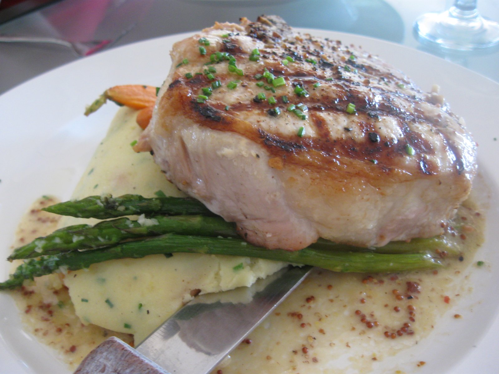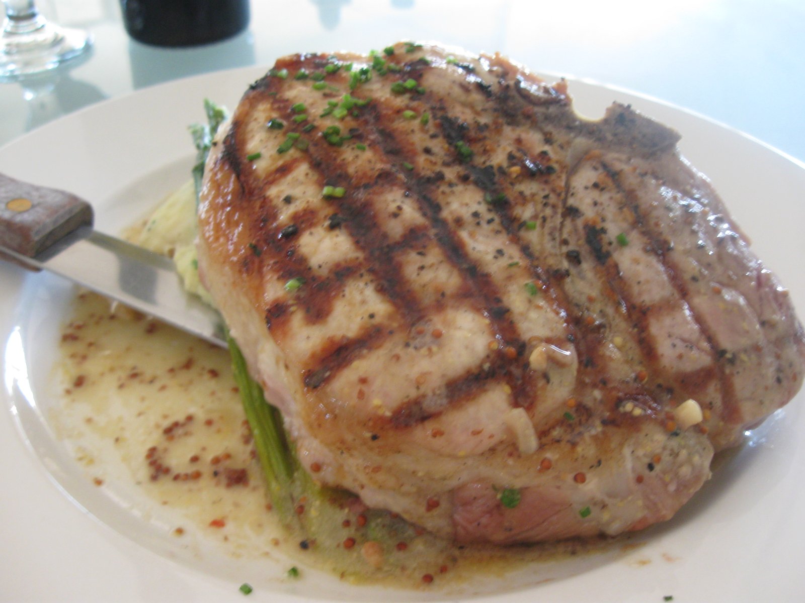 While the pork chop was more than we could eat, it had a nice charred smoky flavor and was perfectly cooked, lightly pink and wonderfully moist: