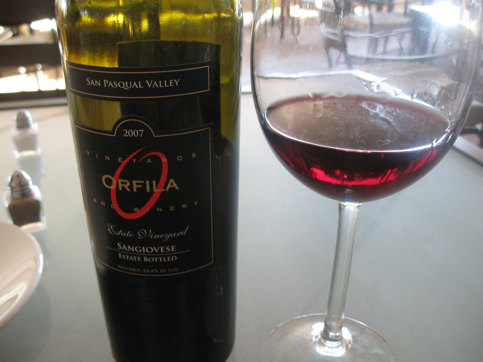 The next night we chose a brightly fruity Orfila Sangiovese ($32 and served a few degrees warmer than is my preference):
