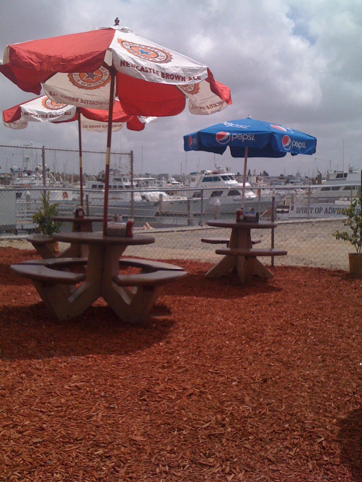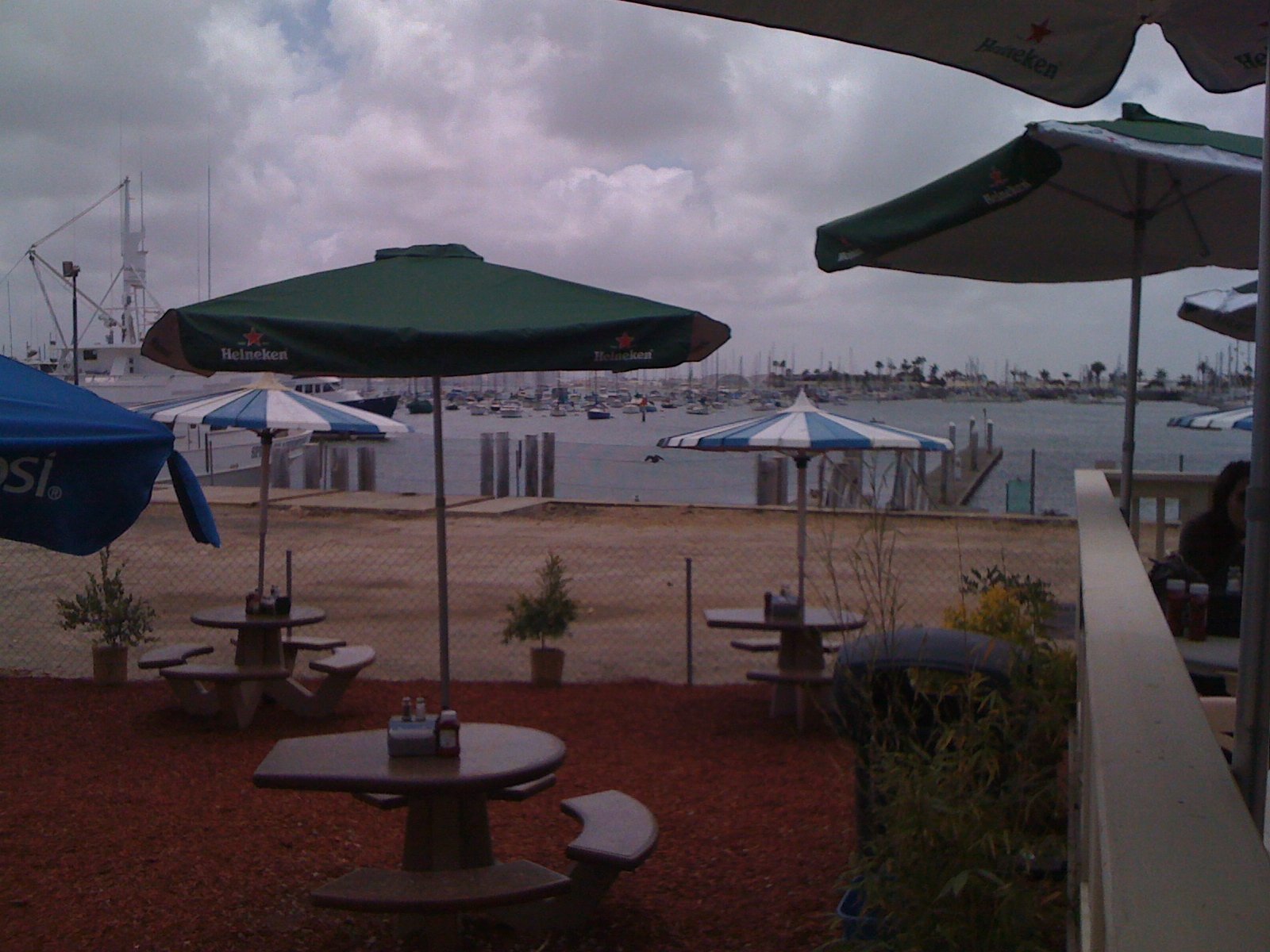 However, the considerably more seating outside, inside and along the 'porch' area makes up for it. Still with a bit of a viw of the Bay. Even if the parking lot is full, there is still seating available.