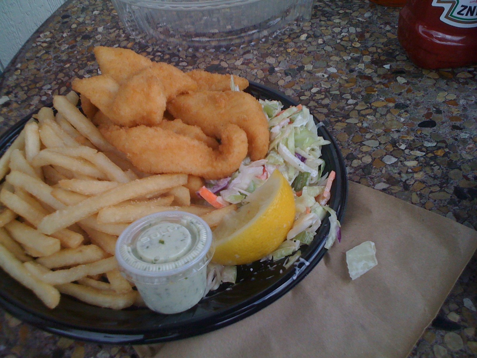 The Squid plate. As always, PLSF mostly sells fried plates. The squid and fish were perfectly, lightly fried, as were the fries that came on this plate. Thin and crispy. The cole slaw is the same as always- chopped, creamy and perfectly seasoned.