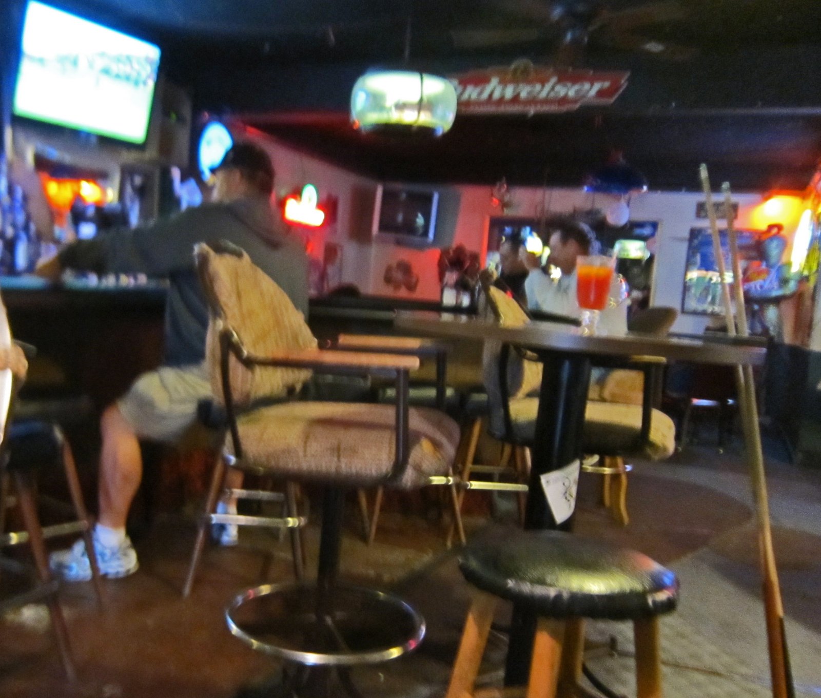 So what the heck….. I walked into the somewhat musty smelling, dimly lit, "Bar and Grill" (definite emphasis on bar here). Man, the place was pretty busy, most everyone was closer to fifty (or at least looked that way) than twenty, so I should right at home. Everyone seemed either to be getting an "early start" or having a liquid breakfast…..