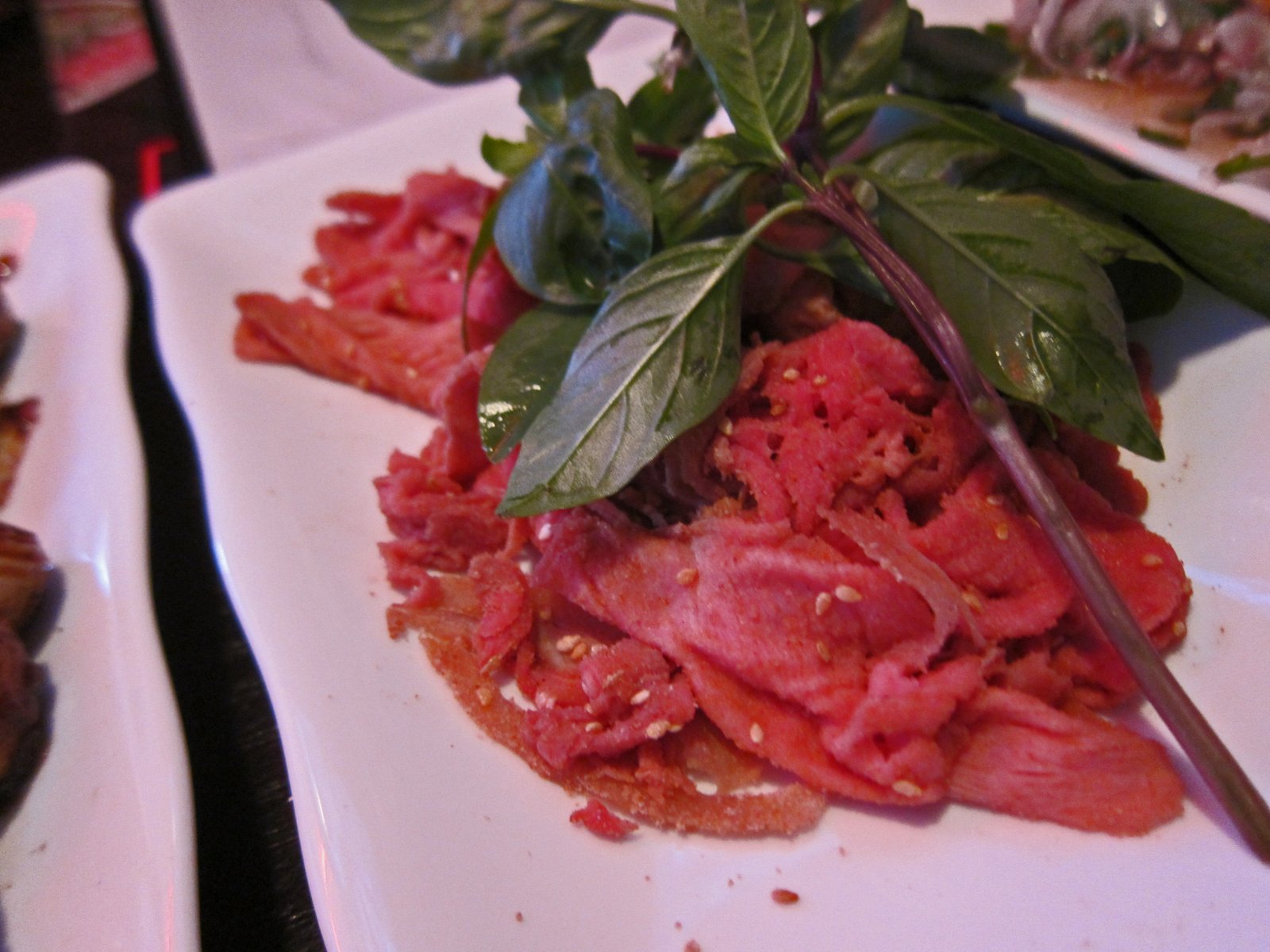 Rare Steak Marinated in Lemon, called Bo Tai Chanh ($4.50).