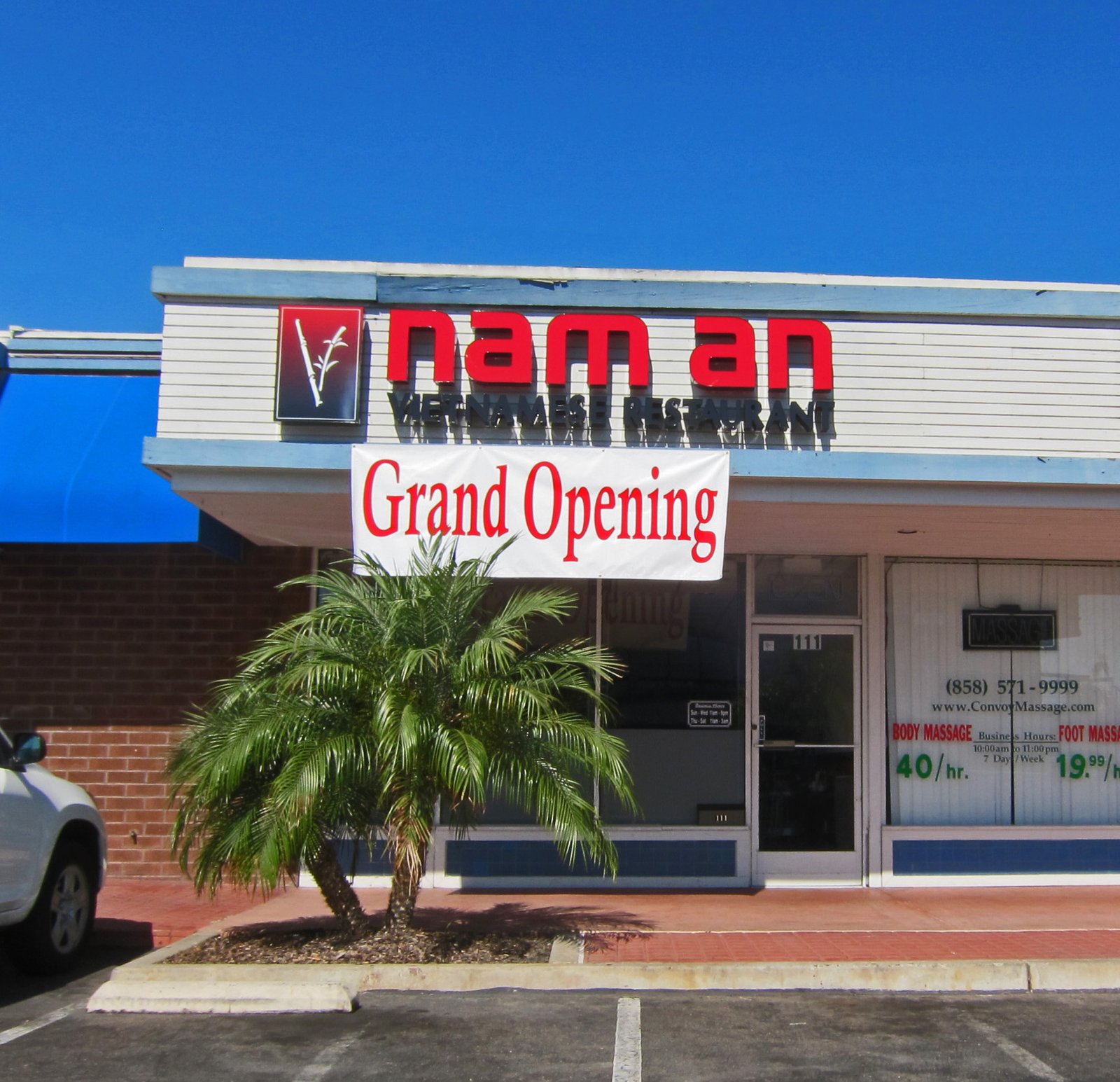I'm not sure why; but for some reason I'd been drawn to the "coming soon" sign in Plaza del Sol for some time. I really have no explanation for it……..but something told me that this place wasn't going to be your typical Pho or Mi joint. A couple of weeks ago, I'd heard about a place opening on Convoy that made their own Banh Pho from scratch and thought "well that's nice…….". Visions of great possibilities doused by poorly a executed concept, a la Mignon Pho came to mind, so I tempered my expectations a bit. Still, it seemed like eons before I saw the Grand Opening sign for Nam An.