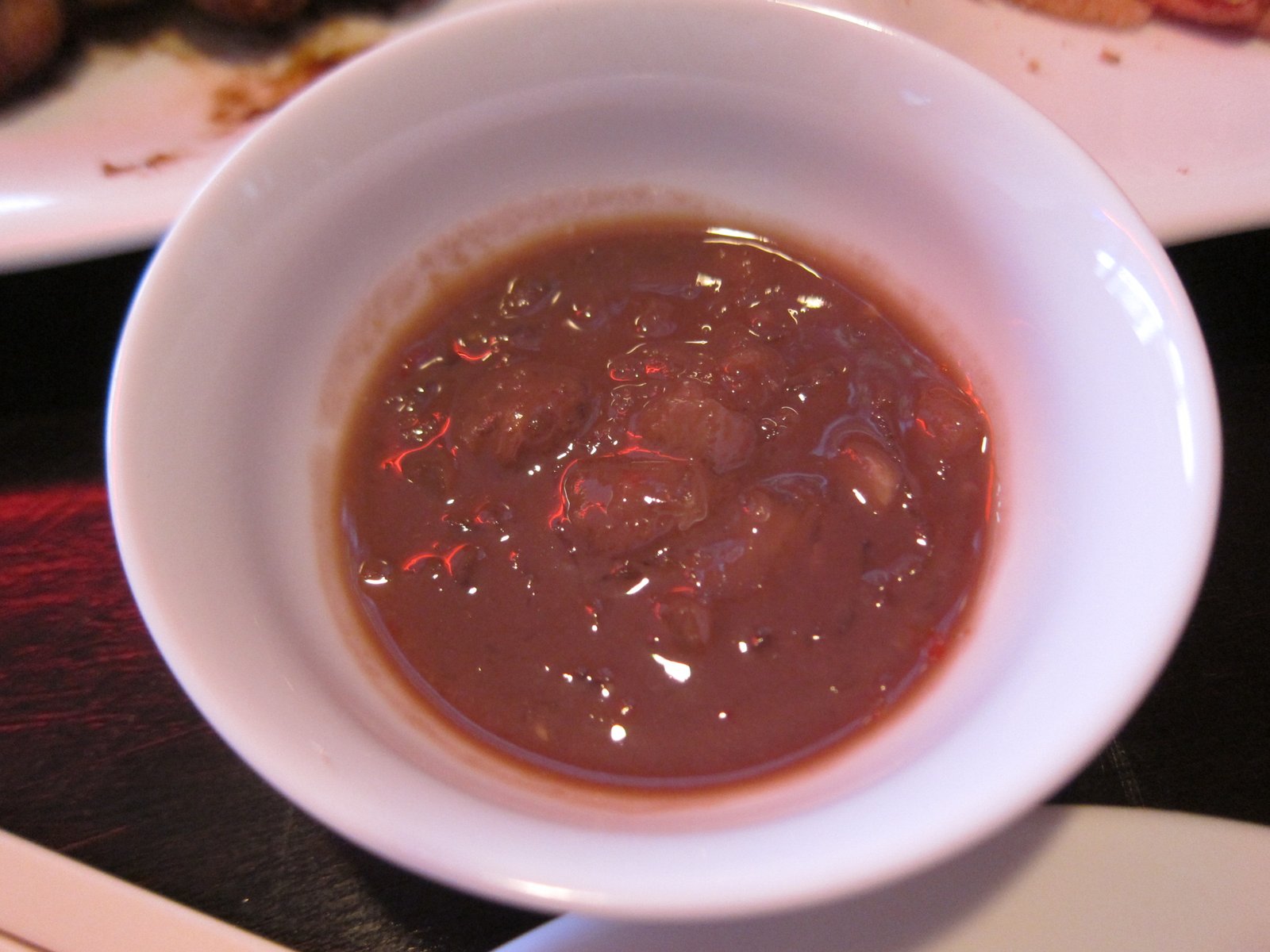 Since this is veal, it's quite toothsome and the rice powder gives it a somewhat nutty flavor. It's not everyone's cup of tea, but I enjoy it. I've usually had it served with Tuong Cu Da, a fermented bean and soy sauce with ginger. This one was served with a sauce made with Mam Tom….very pungent and heady, but also with a touch of fruity sweetness to it. On a later visit, the Missus asked Carolyn what gave this sauce the fruity edge. Carolyn was happy to oblige, and told the Missus it was pineapple. Good dish…..