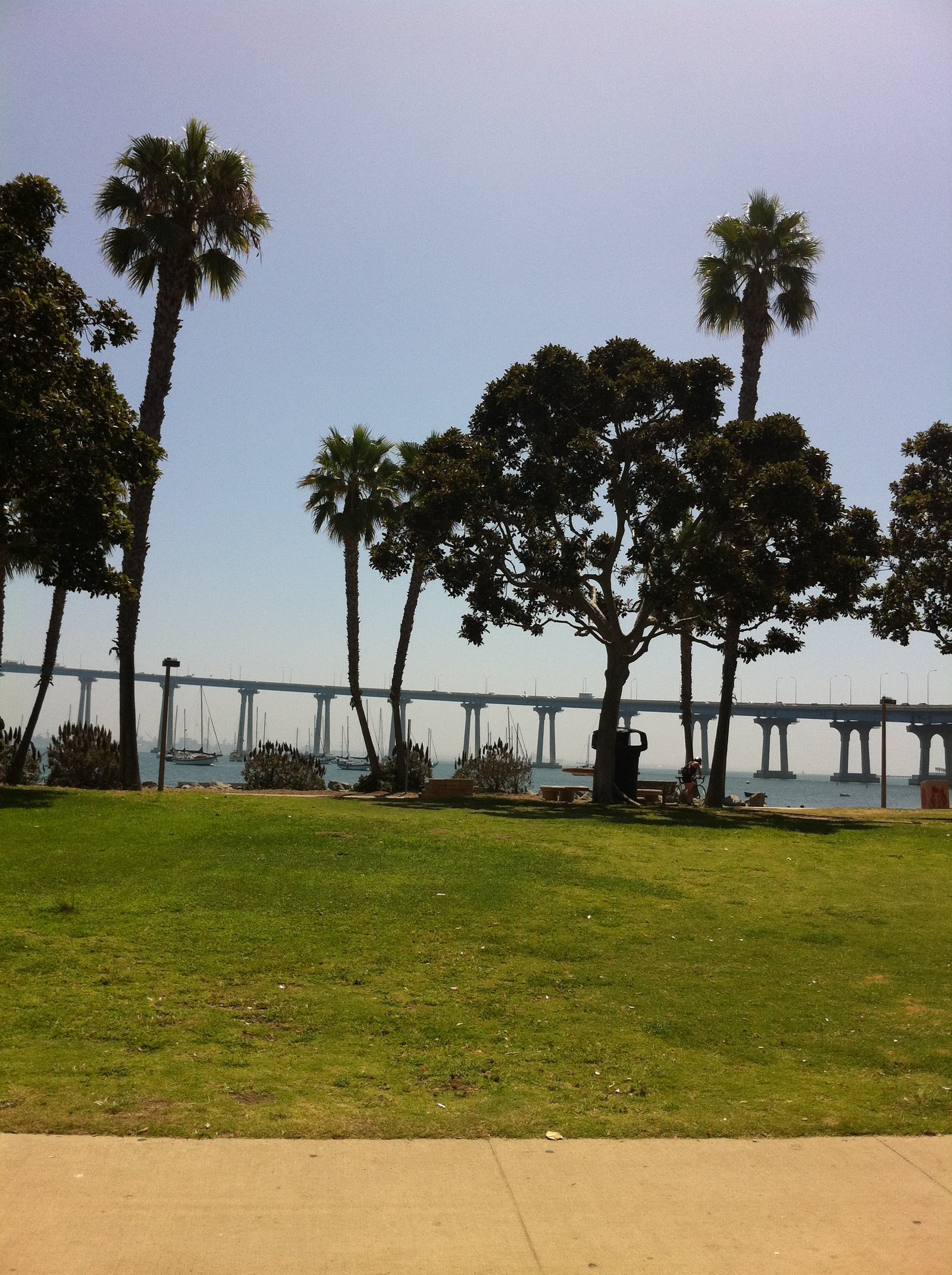 The Mister and I decided to take our 'daily walk' on the Island City of Coronado the other day. We drove over the Bridge and took a right, then another right. There's a park, with a large parking lot and a view.