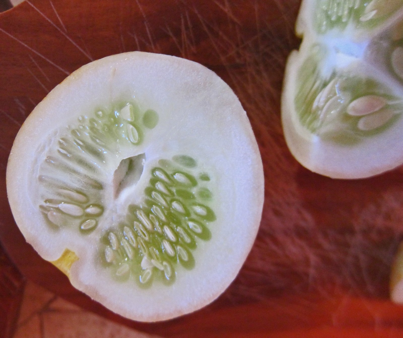 After inquiring about some of the more interesting vegetables…. I picked up two types of kale and some pretty interesting cucumber.