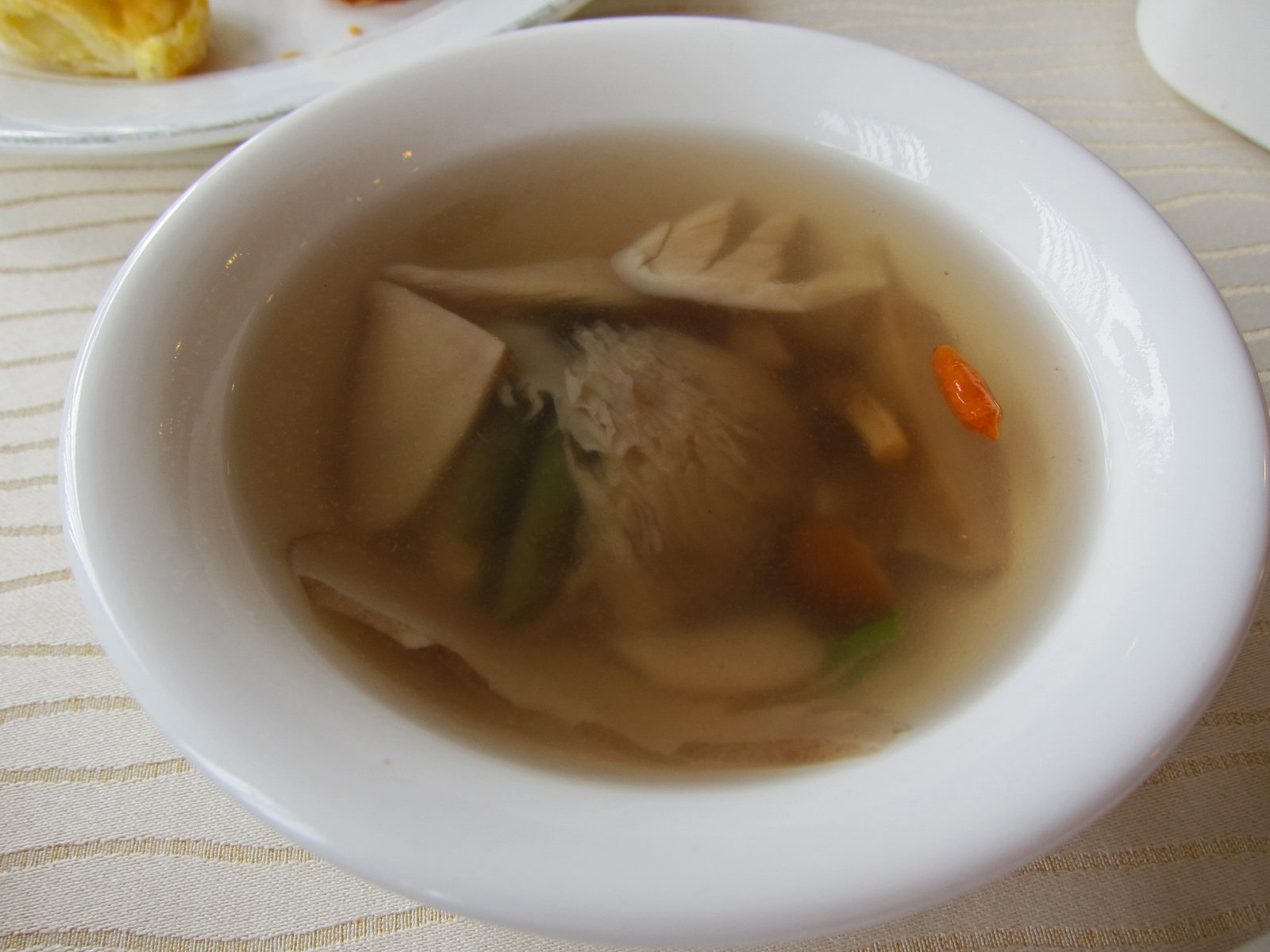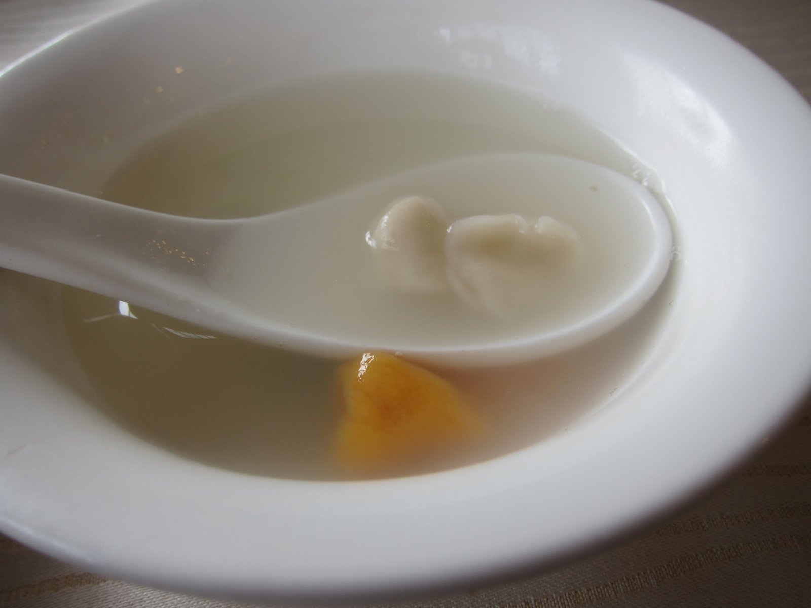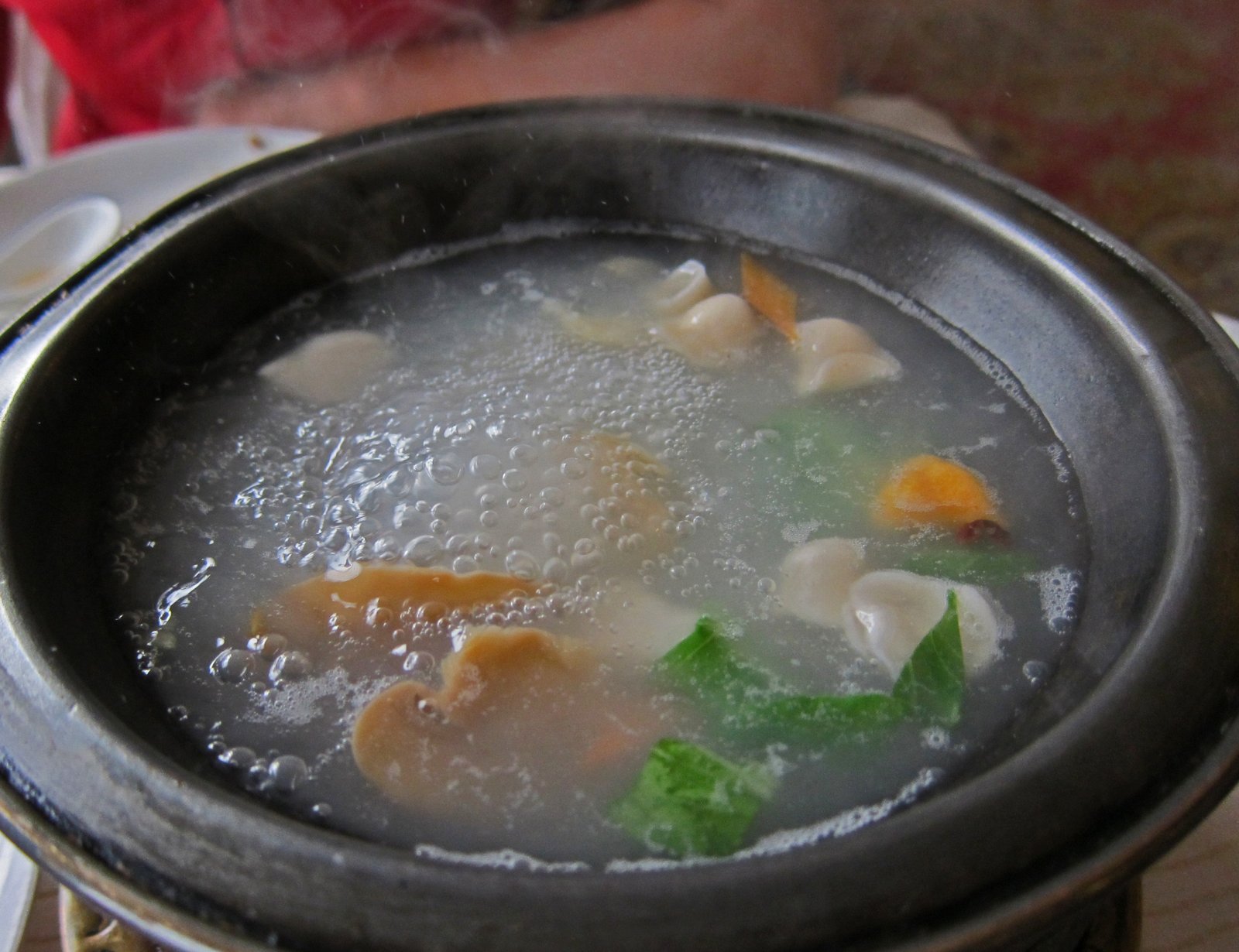 Opening the top of the pot didn't reveal much….a pale broth with some greens and a wolf berry or two…..