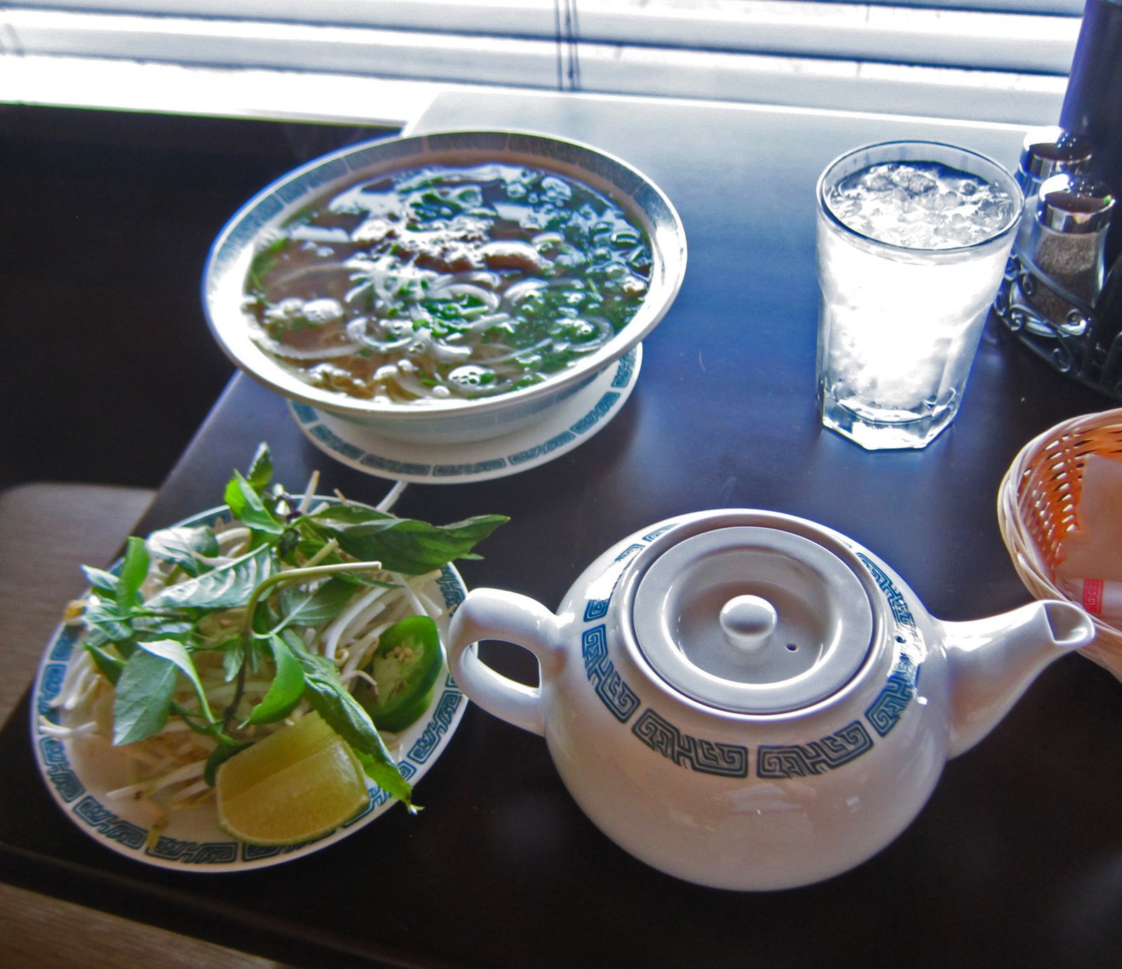 On one of my "morning drives" a couple of weeks ago, I drove into the strip mall that houses Seafood City and noticed a new Vietnamese restaurant had opened next to Siam Nara. Even though the weather had been pretty warm at the time, I thought that a nice bowl of Pho would be just the thing. It was not quite 10am, so the mercury had not yet quite reached an uncomfortable level for consuming Pho.