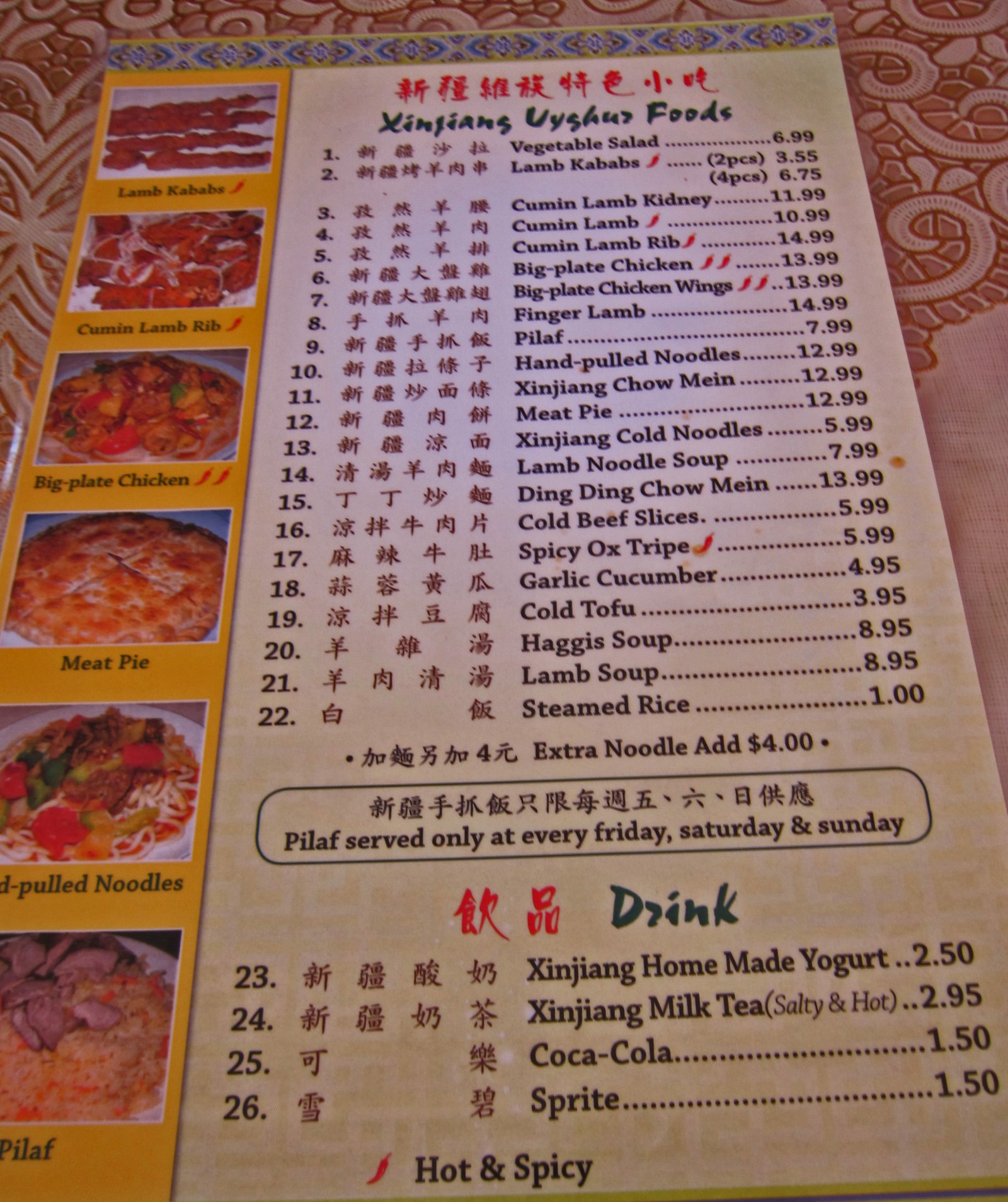 I had recently heard about an honest to goodness Xinjiang/Uyghur restaurant opening in the SGV…. not Northern style Muslim Chinese, but real Xinjiang. Last year, during our tirp to China we had eaten with friends at an Xinjiang restaurant called Jinsite in Beijing. I really enjoyed the food, all the different skewers, "rice to be eaten by hand", and other stuff. The Missus wasn't so thrilled, but She seemed rather enthusiastic about checking this little restaurant, located on the corner of New avenue and Ralph street (more on that later).