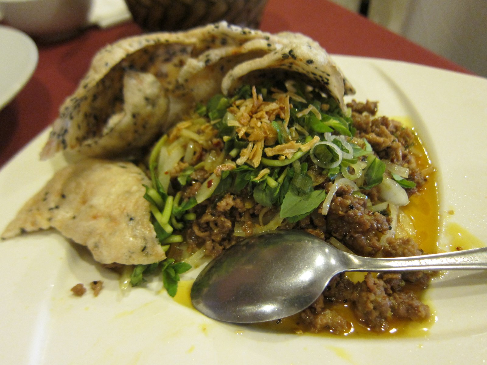 It had actually been a while since we've been here…… a couple of weeks ago I met PeterL and his lovely wife Ange for dinner at Que Huong. Strangely, Peter nor his brother John had ever heard of this place. We had a fine meal and there was something I noticed that evening at Que Huong. I've been coming here since 2005, when the current owners had just taken over the place. (Geeez….I've been doing this blog for waaay too long!) Because I'll usually visit in flurries, with long gaps between visits, I've started noticing something about Que Huong….a good thing. The place has slowly evolved from mainly a hot pot, drinking place, with karaoke and all that stuff, to a place where folks still come to drink a bit later on in the evening, but with more of a dinner crowd. I've seen birthdays and other events; one of the owners, a burly young man named Jay, told me he's even done a couple of weddings! Good for them. It's nice to see a place hitting its stride…there's no more "specials" haphazardly written on the mirrors.