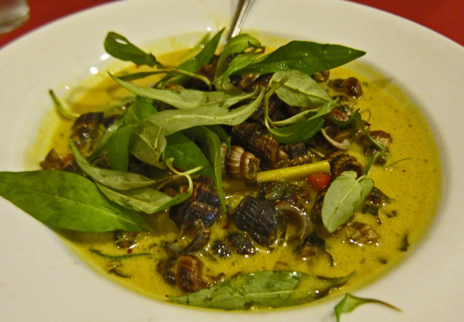 You just have to take a dish like the Ốc len xào dừa, the snails braised in coconut milk. The presentation of the dish is not much…well, prettier.