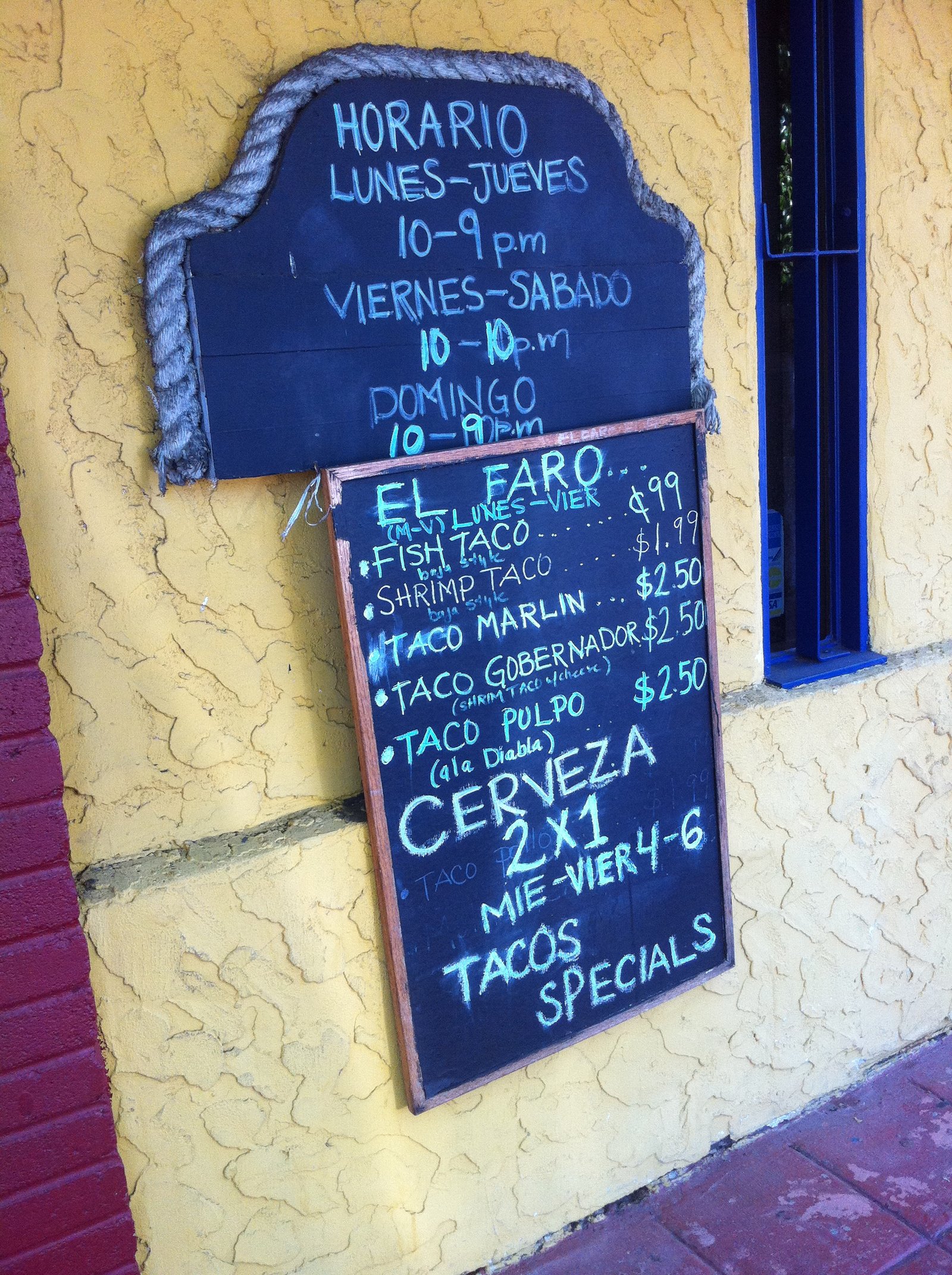 El Faro, Spanish for "the lighthouse" . Of course, they serve seafood. Thing is, we saw a mariscos truck and a small mariscos restaurant on the same block…never considered this part of town to have mariscos. But what do we know…