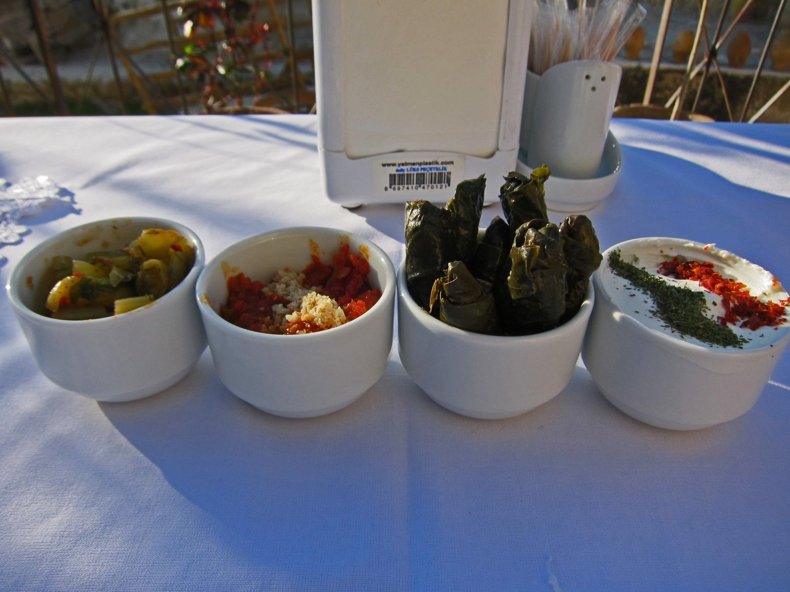 The Missus loved the dolmalar, stuffed grape leaves which I thought were a bit too thickly wrapped.