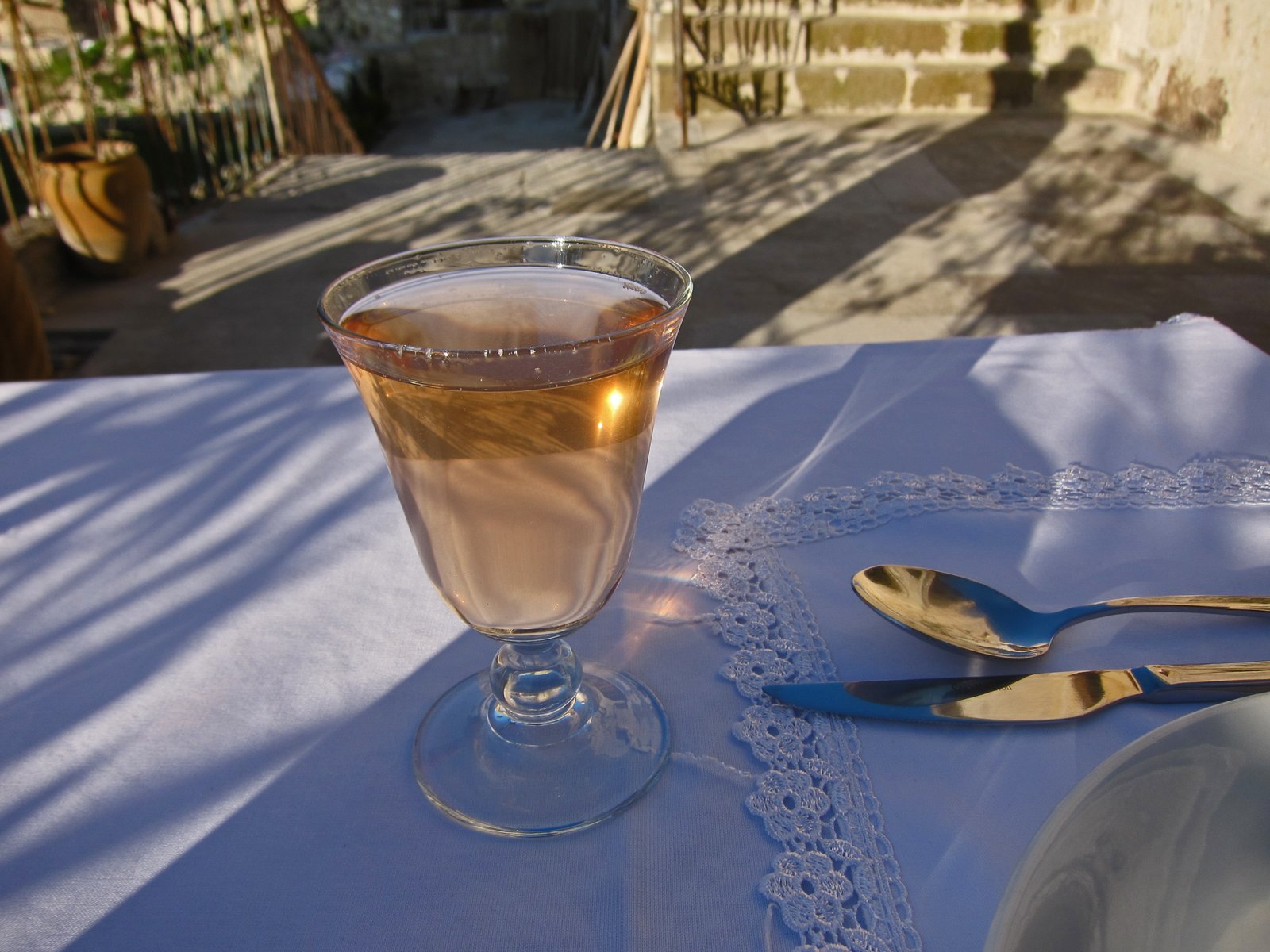 The dining area was through a set of doors in what was obviously an old residence. It was charming, though a bit dark and crowded. But that was no problem. This was when I opened my big mouth….looking at the patio I mentioned to the man, "you have such a nice view here and such a big patio, when the weather is good you should have tables out there." He turned, laughed and said, "you want to eat out there…no problem…." I protested, we didn't want these folks working so hard, but before I could complain too much a table was set up for us on the patio. It was pretty amazing……