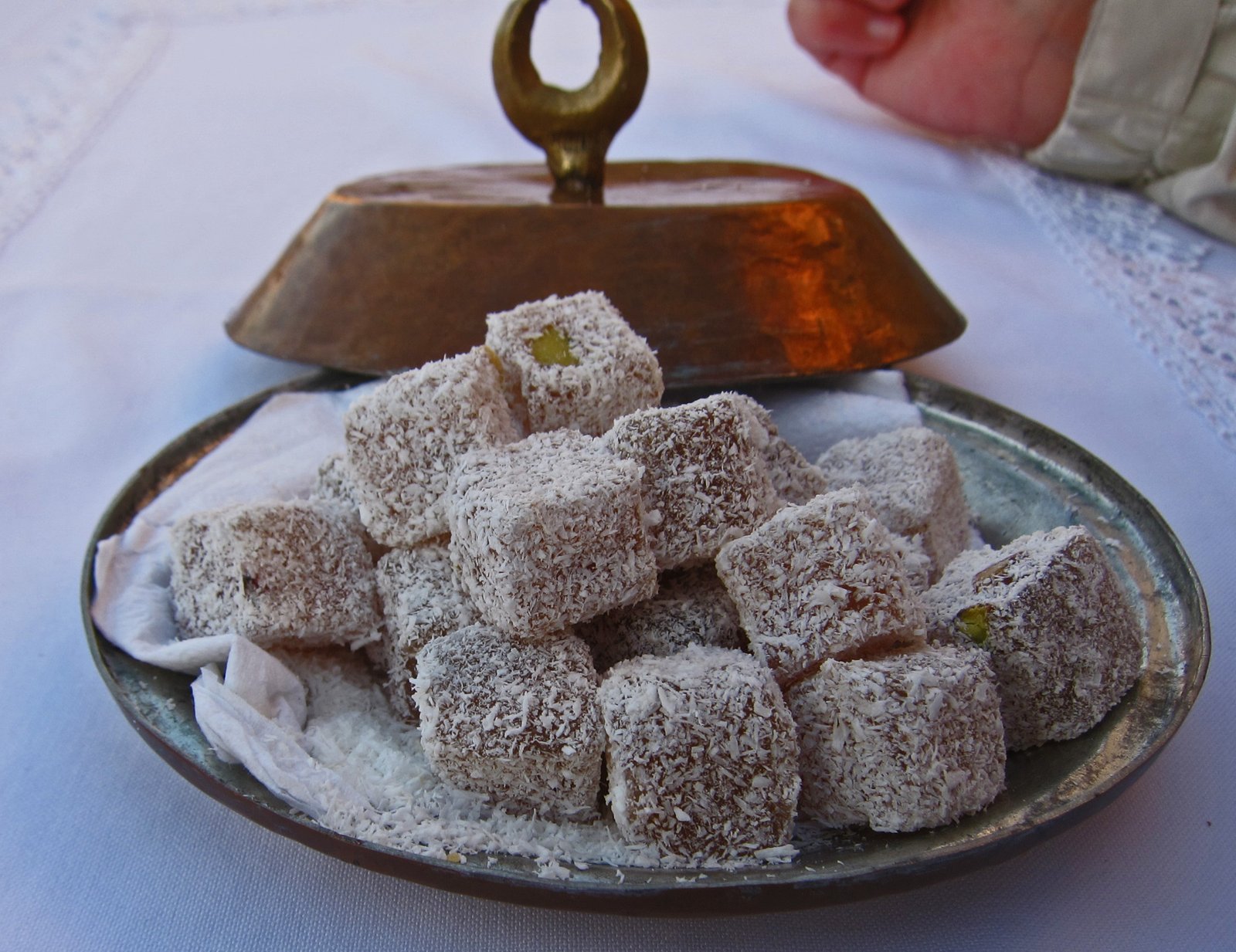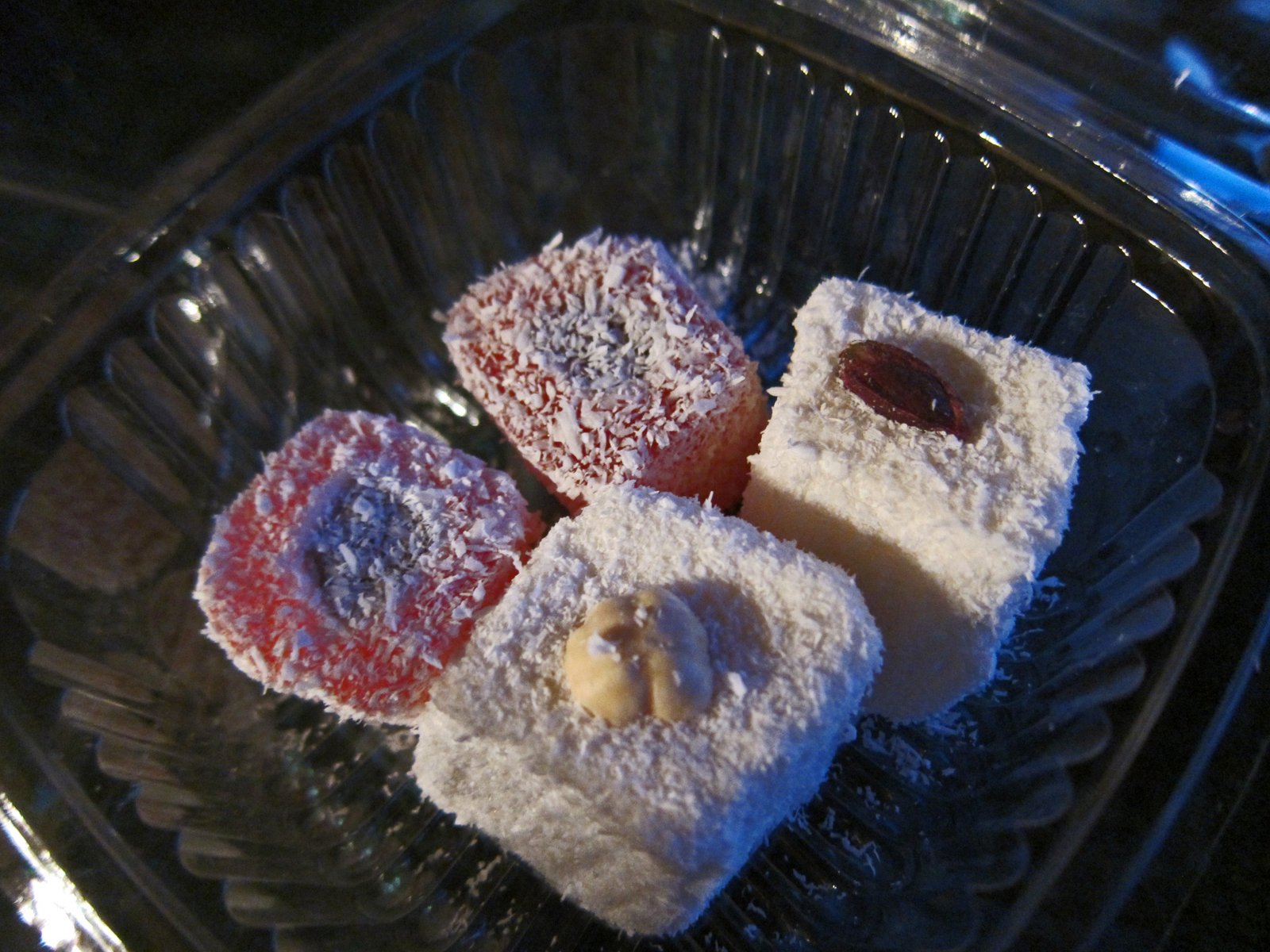 As the lights of the main square slowly came on one by one, the Missus returned with some Turkish treats………