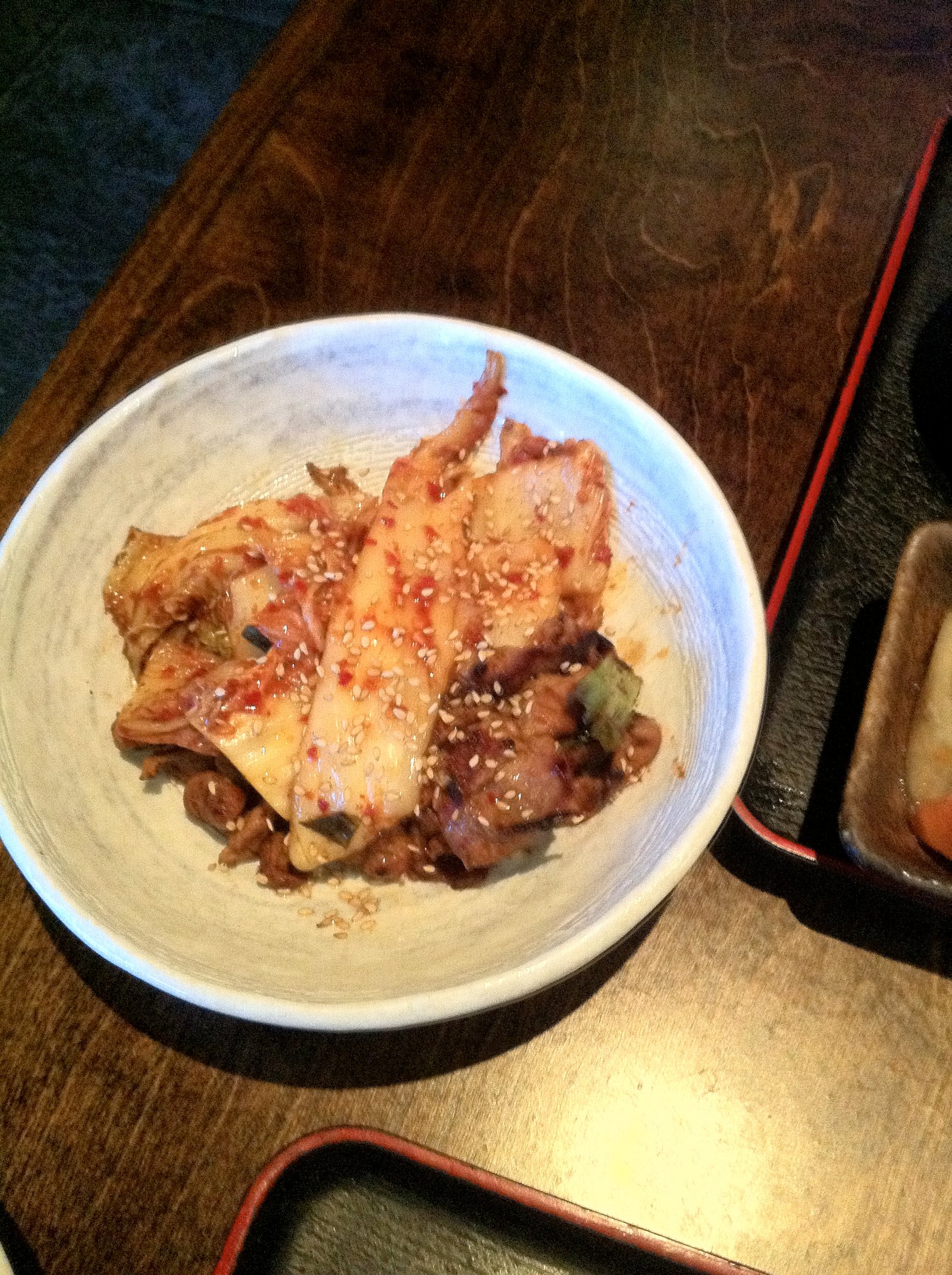 My friend ordered this grilled beef dish, which seems to be topped with kim chee ($4). She said it was very good. (I'm sorry, I wasn't overly reading the menu, we were chatting).