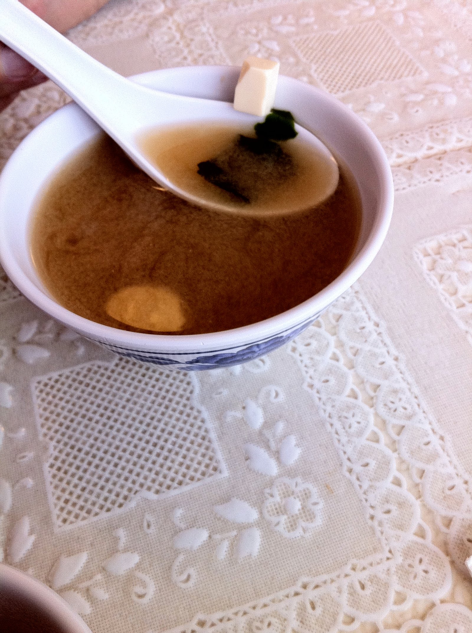 The miso soup is pretty standard, made from miso paste. It has a deep flavor and the tofu cubes are a firm consistency and always tasty.