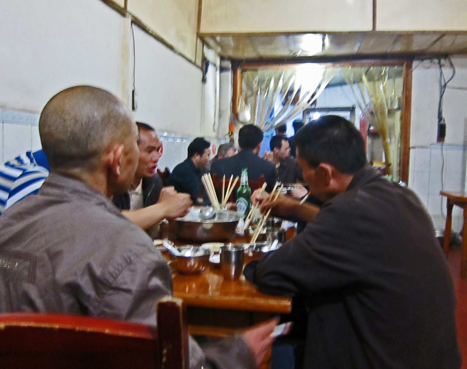 As I mentioned in a previous post, the Missus' cousin lived in Jianyang, about 80 kilometers outside of Chengdu. And while he and his family really weren't "foodies" he went out of his way asking friends and acquaintances for recommendations. We really appreciated his efforts. On our first evening, he took us to have what is Jianyang's signature dish, Jianyang Mutton Soup. Located down a dusty side street, this little shop was doing some major business….though the customers seemed overwhelmingly male.