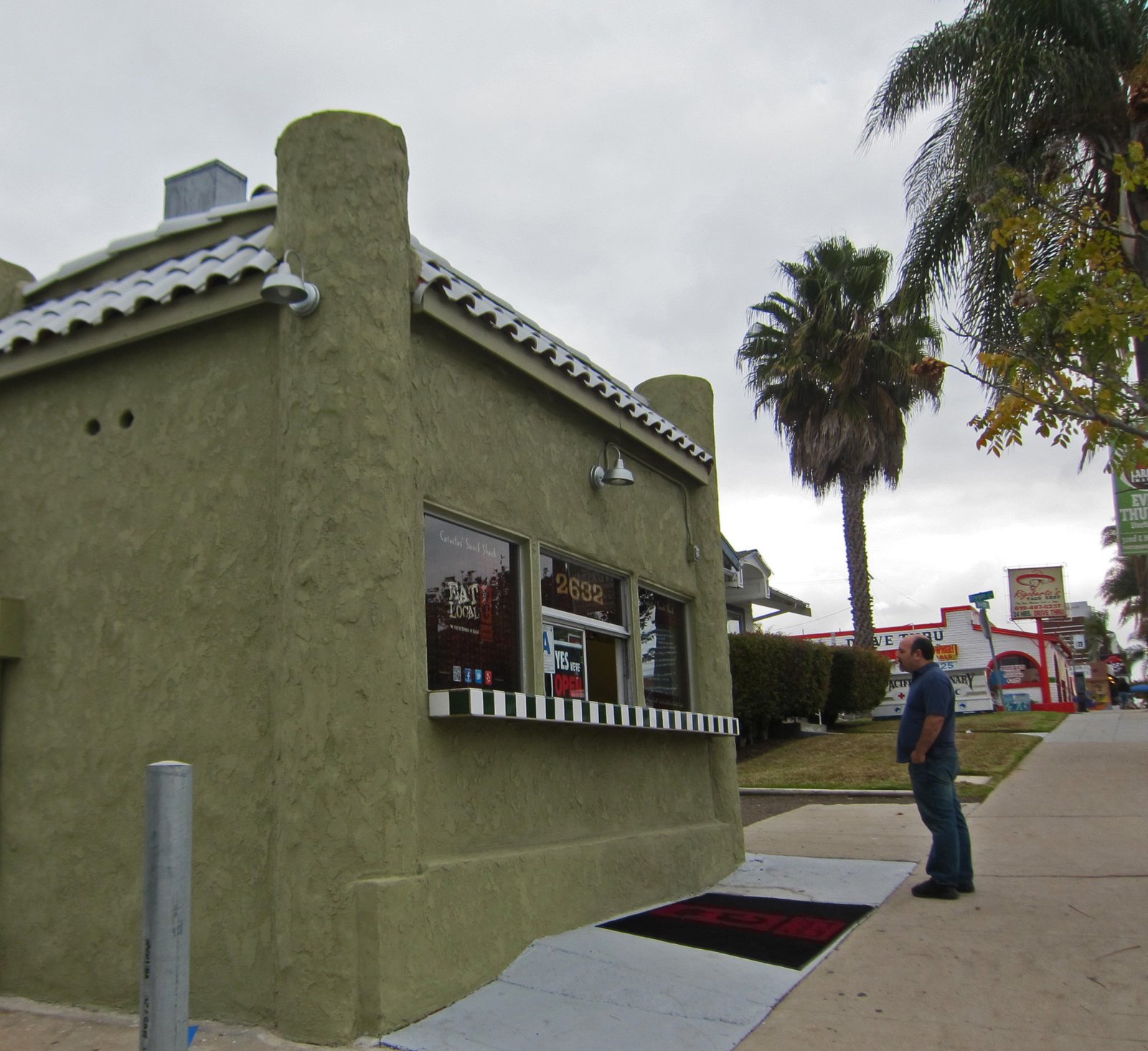 From the name, I thought this was a taco shop (which has to be the white building in the back of the first picture). The menu sounds interesting, and I like that dining area, too.