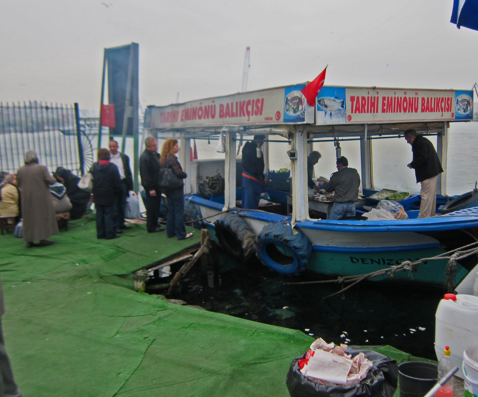 All along the area around the Galata Bridge are boats selling Balik Ekmek, the famous fish sandwich.