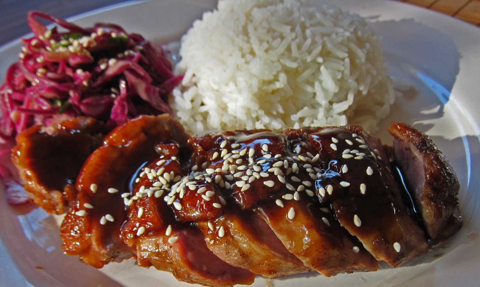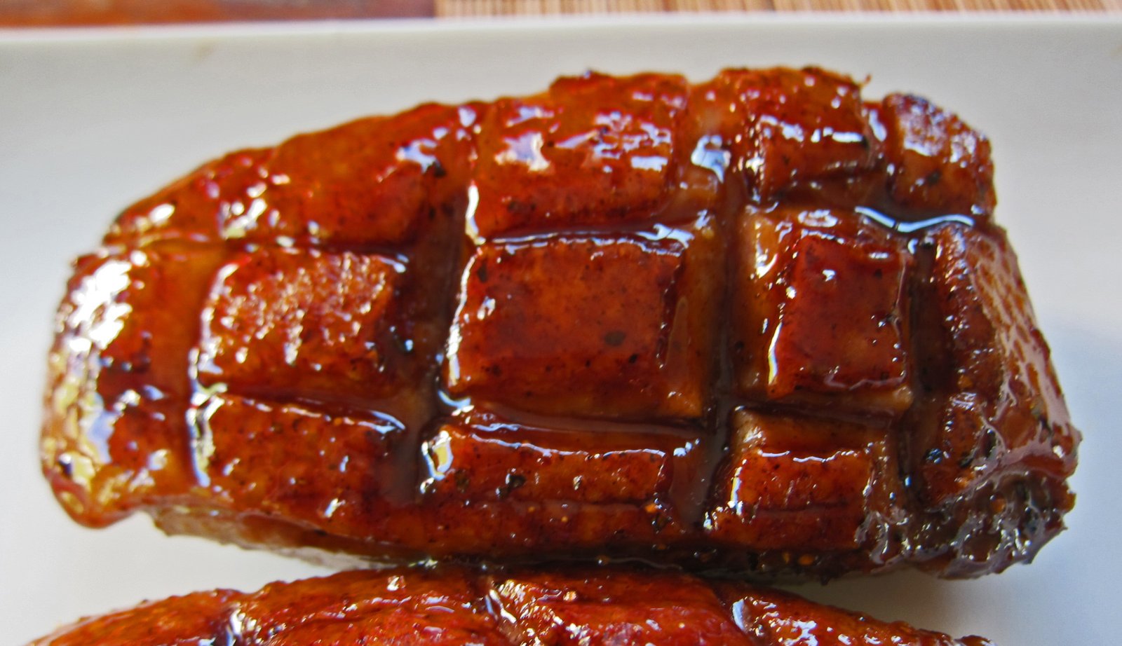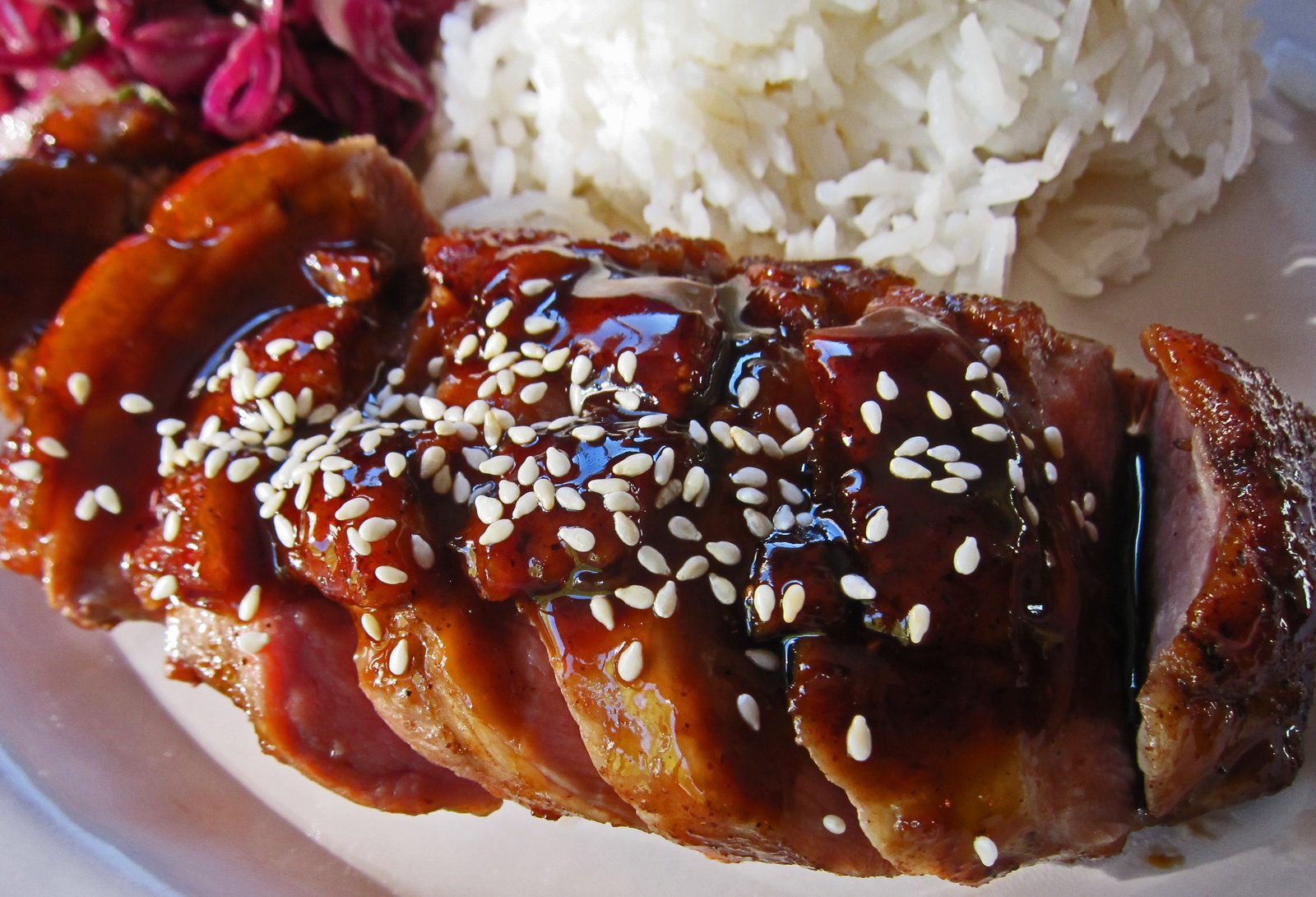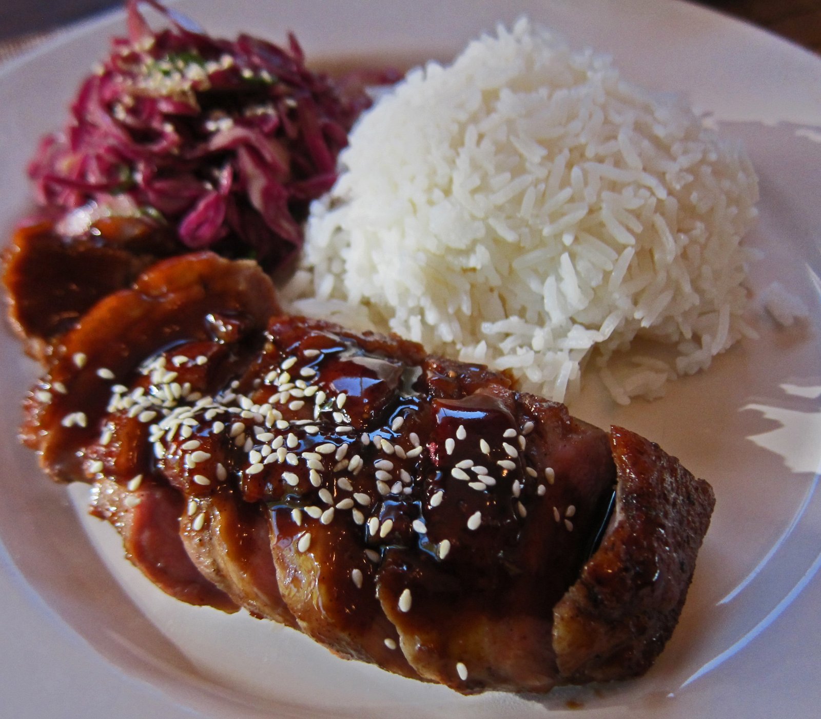 I cooked off the duck in the usual manner to render off the excess fat and crisp up the skin. At the end, I brushed on the glaze. Of course I spooned extra sauce on it….you can't have too much of it!
