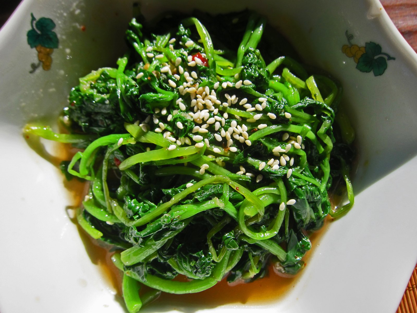 I served it with Purple Cabbage Slaw with Sesame Dressing and a namul like blanched watercress with a dressing made from rice vinegar, sugar, sesame oil, ground chili, soy sauce and water.