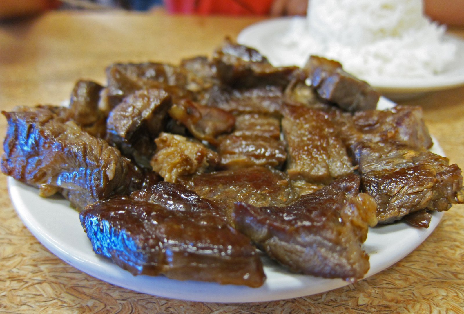 Man, this was kinda tasteless and fairly bland in addition to being sinewy. The version I like at Ono's is more traditional, but not hard like jerky, with a salty flavor that a friend of mine from New York always says tastes like corned beef. The version from Helena's is, I believe made from shortribs and have a real beefy flavor and isn't nearly as tough as this.