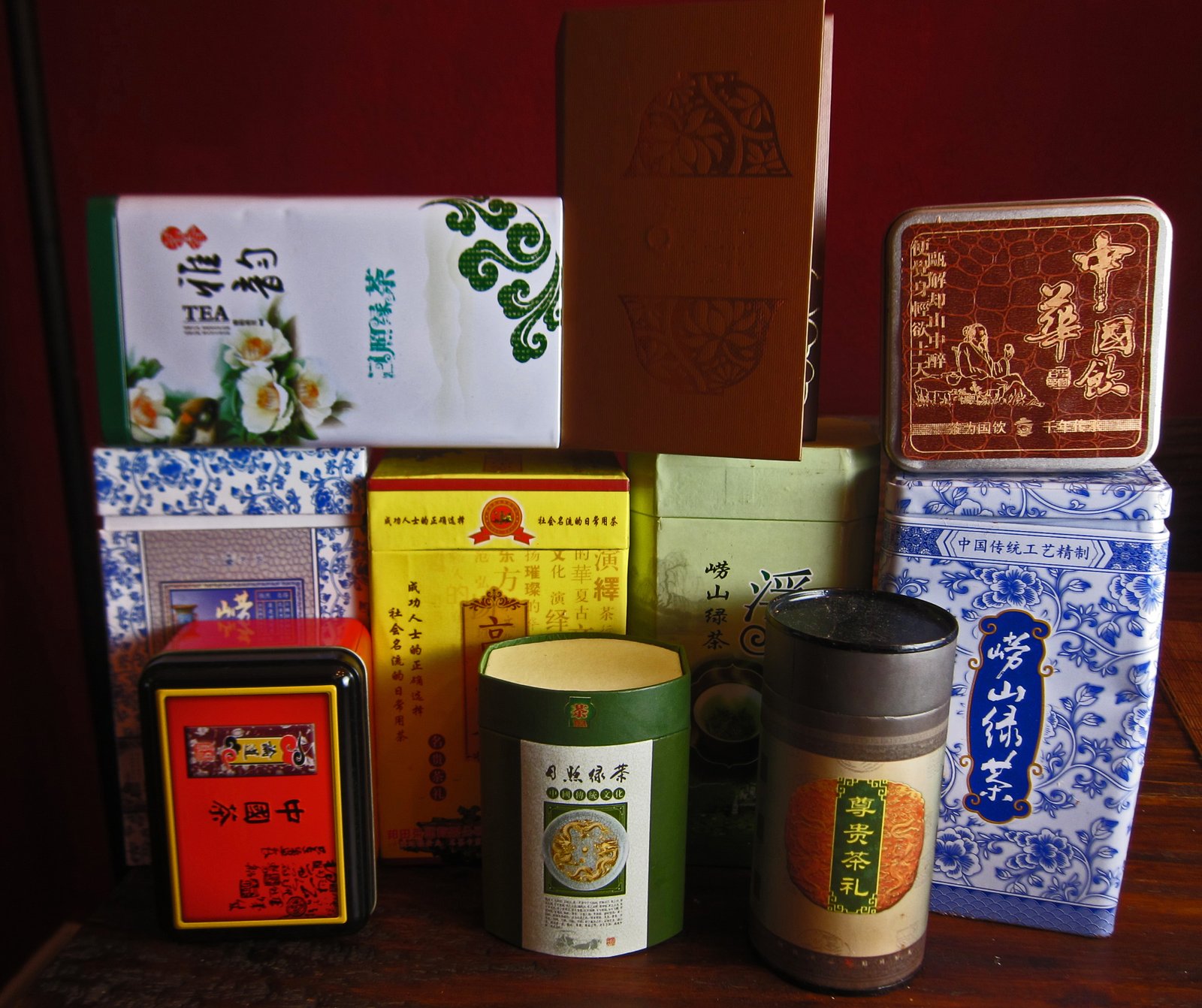 I really became a big tea drinker after our trip to China nearly two years ago. And it just carried on after I returned; I drink tea everyday at work, just placing leaves in a large cup I have and adding hot water as the day goes on. It does help that one of the "big" gifts for Chinese is tea. Here's a bunch of containers I threw together for a quick photo: