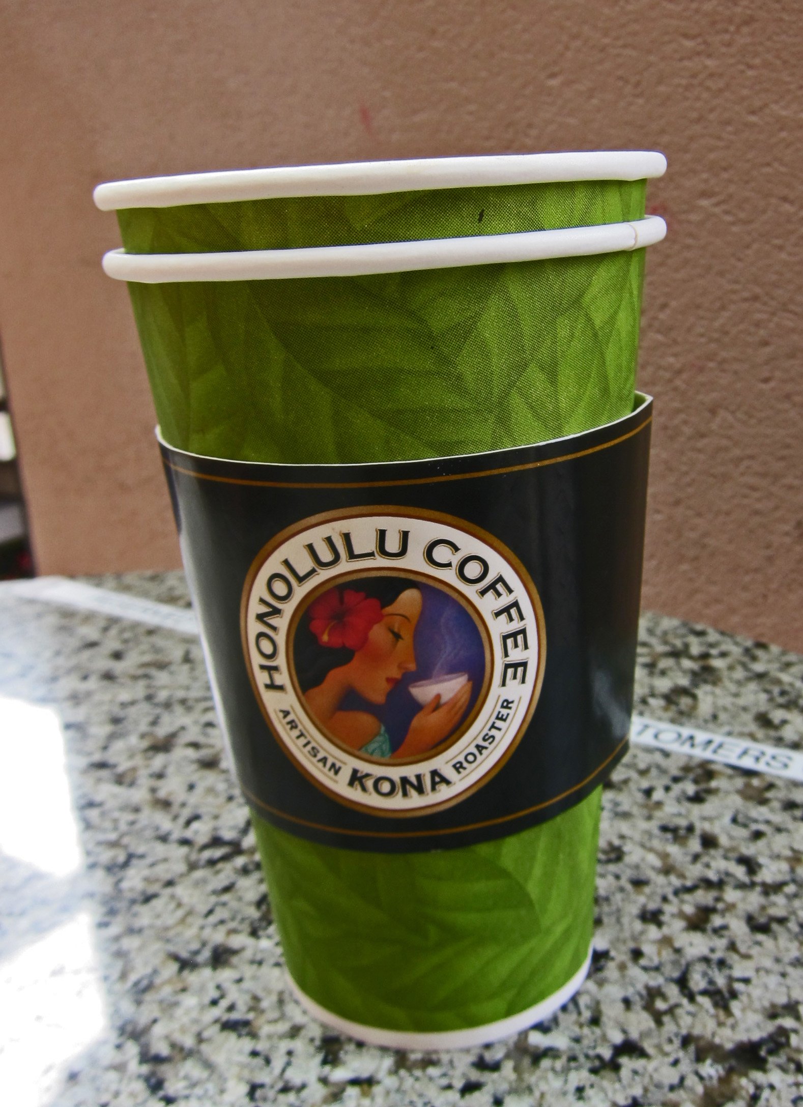 On our last (thankfully) trip to Ala Moana Center, with the Missus riding high from just purchasing a pair of Manolo Blahniks She wanted, I decided that we should sit and have cup of coffee. The smells coming out of this shop was just wonderful……….