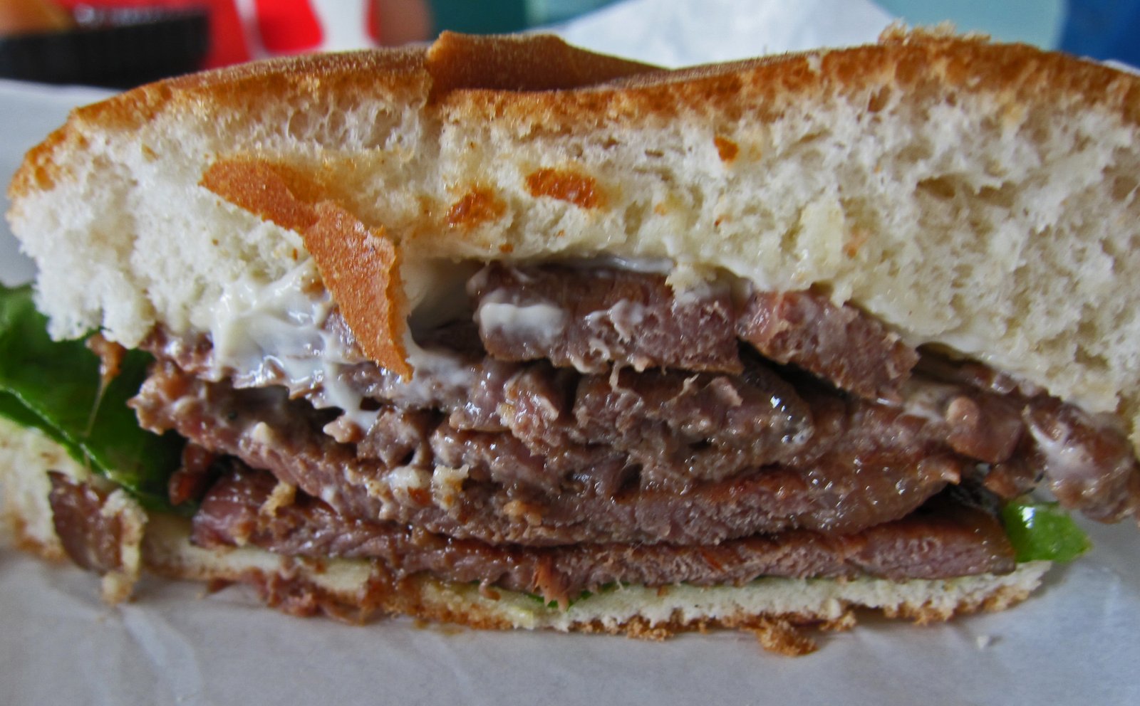 From the photo you can tell that the meat is not the most tender, but it's what I grew up eating. It's also much better than most of the L&L stuff. For some reason, I've gotten to appreciate the role of lettuce in these type of sandwiches, it seems to cleanse and refresh the palate. Love the mayo and onions too…..