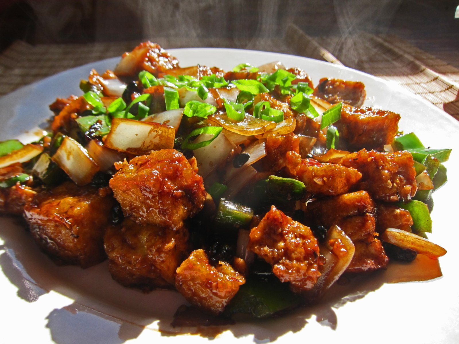 Earlier in the year, the Missus and some coworkers were eating at Sipz a lot. Curious, I wondered what the heck they enjoyed so much and was shocked to find out…..and then they told me the prices. I told the Missus that the dishes they enjoyed were no big deal…really, for ten bucks and up??? So She told me to prove it….which I did. But now I'm stuck making stuff not only for Her, but some of the folks She works with too….here's a black-bean tofu dish…the ingredients (other than the oil) cost about $2.50……