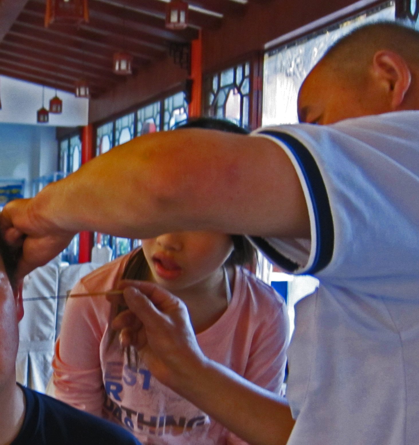 Of course, after about four cups of tea, the inevitable happened….I needed a restroom, which is how I came across the worst restroom of our trip to China. No mean feat, as anyone who has been to China knows, there are contenders everywhere. But this one took the crown by a wide margin. As I walked to the toilet, I could already make out the ammonia like smell. I had thoughts of finding a bush somewhere, but banished them immediately. This was a monastery, what would my punishment be in Naraka be if I peed on a bush! I took shallow breaths as I walked into the lavatory and was amazed at the sight of the trough….it was a trough, with a trough…..a almost even pool about a half inch deep and three feet wide  of liquid(take a guess) surrounded the trough. Dozens of beetles and insects performed synchronized swimming demonstrations in the pool. What the heck was I to do? In the end, I did as probably most everyone else did, I stood well clear of the pool, hoped my ab muscles worked ok and fired away…… As I stumbled out of the lavatory, a young man entered, (all these folks drinking tea, what else was going to happen?) he came to a stop a couple feet in front of me, halted by the wall of ammonia. I could feel his pain. I really felt icky and when I sat down next to the Missus I whispered to Her:
