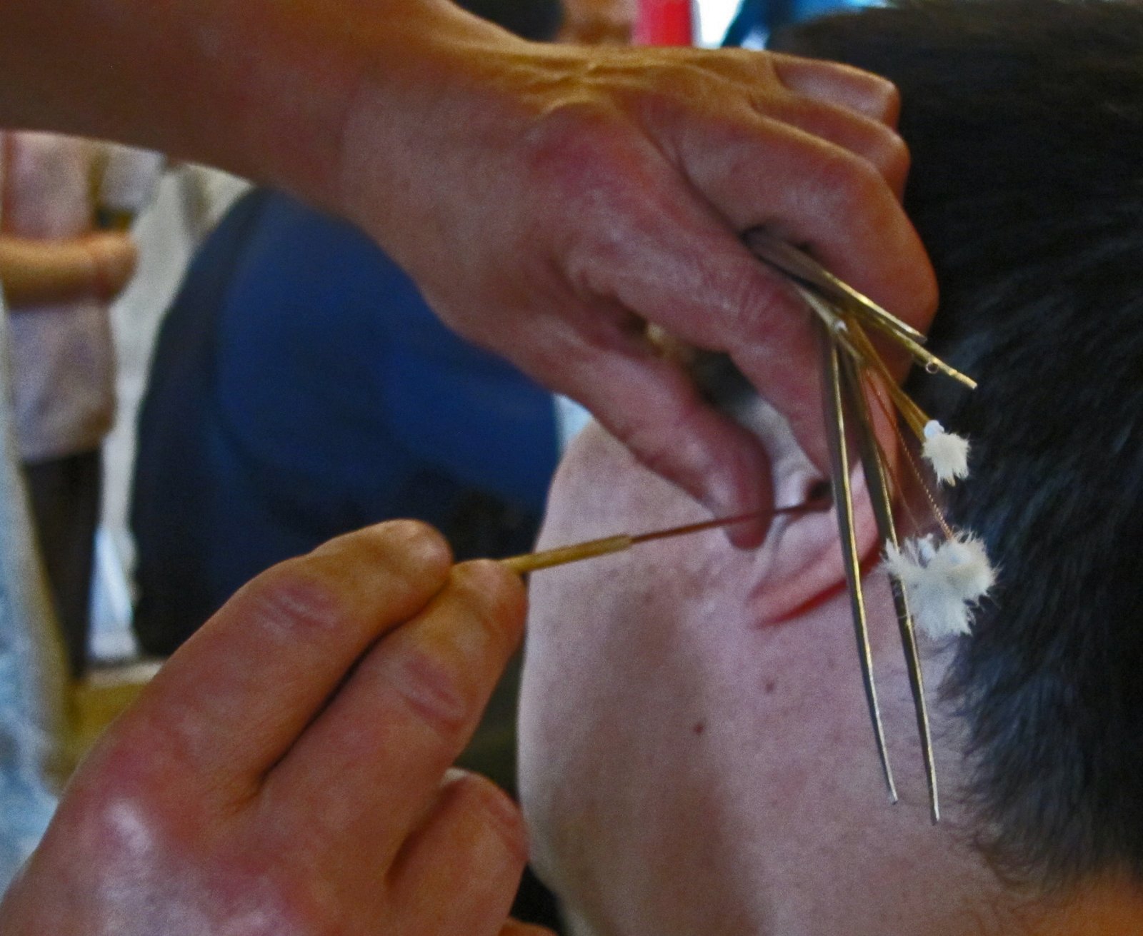 "Yeah, while you went to the restroom, I asked the ear cleaner in the tea house to come over and clean your ears, but they closed before he could get to you. So he came over here to finish the job."