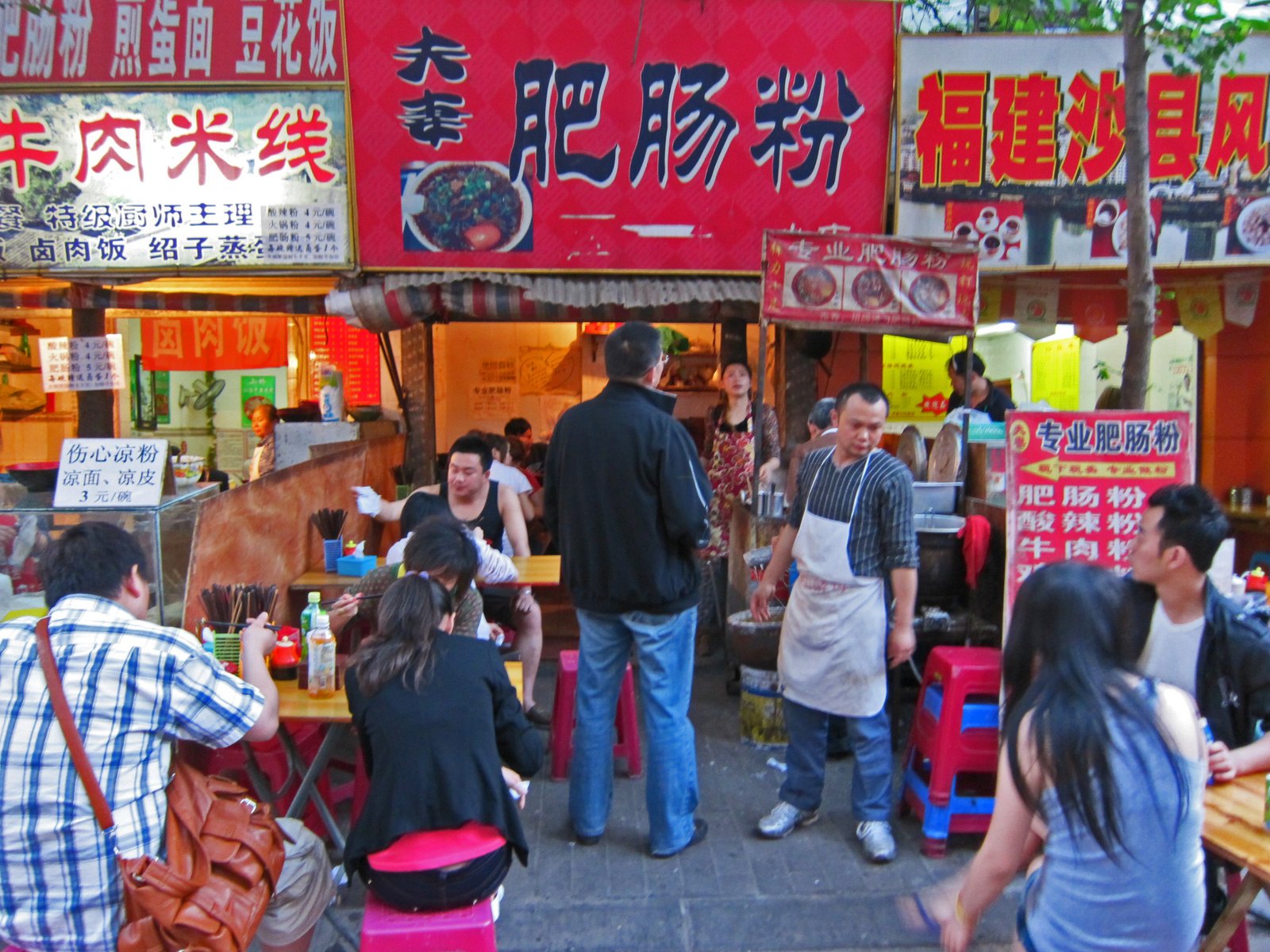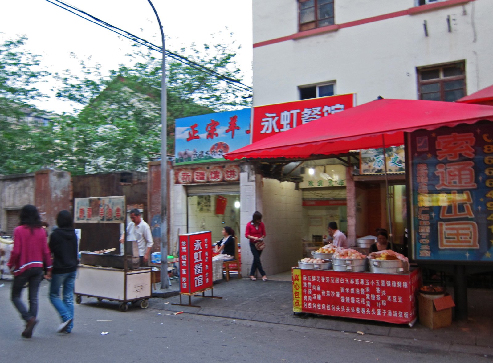 Since our flight was early in the morning, we stayed in Chengdu. After being dropped off at our hotel we decided to take a walk around the area……I'm pretty sure there was a college or university around because on one of the side streets…..