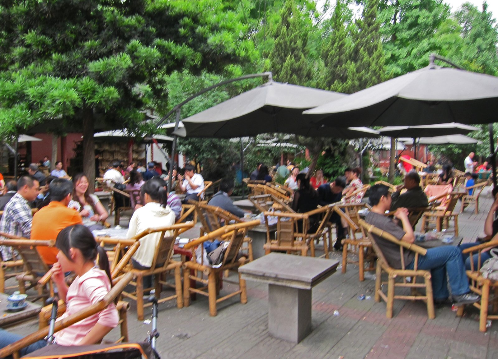 Folks bought a cup of tea and maybe some snacks, they keep refilling your cup with hot water as many times as you want. Folks were reading, napping (in spite of the racket, some people were indeed crashed out), playing cards, games……folks just seem to be plain enjoying themselves. Shells from sunflower seeds flying about….even the birds here are pretty aggressive, flying right onto your table to take "their cut" of the profits.