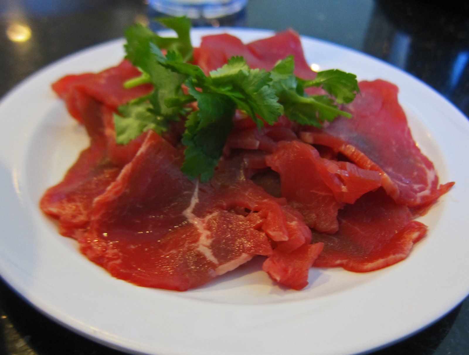 I was surprised at the amount of beef tenderloin(I ordered a small), cut a bit thinner than what I consider the norm to be. It started falling apart as I moved it from the plate to the broth for a quick dunk.